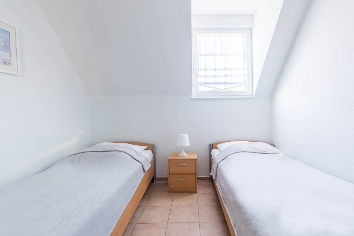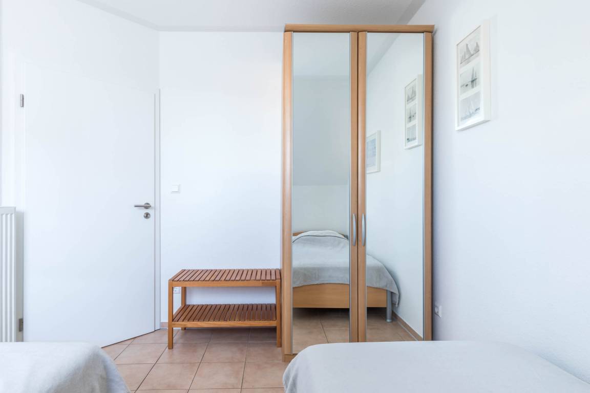 Ebenfalls finden Sie in der zweiten Wohnebene ein Schlafzimmer mit einem großen Doppelbett sowie ein Gäste-/ Kinderzimmer mit 2 Einzelbetten. Beide Zimmer verfügen über einen Kleiderschrank für Ihre Garderobe.