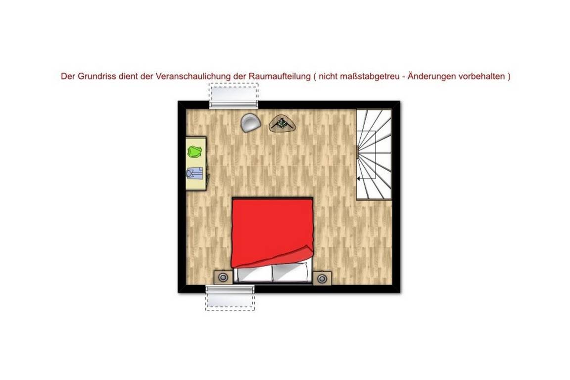 Vom Flur aus führt die Treppe weiter ins Dachgeschoss. In dieser Etage gibt es ein weiteres Schlafreich. Wer Ruhe braucht, ist hier bestens aufgehoben! Auch in diesem Zimmer sorgt ein großes Doppelbett für erholsamen Schlaf.
