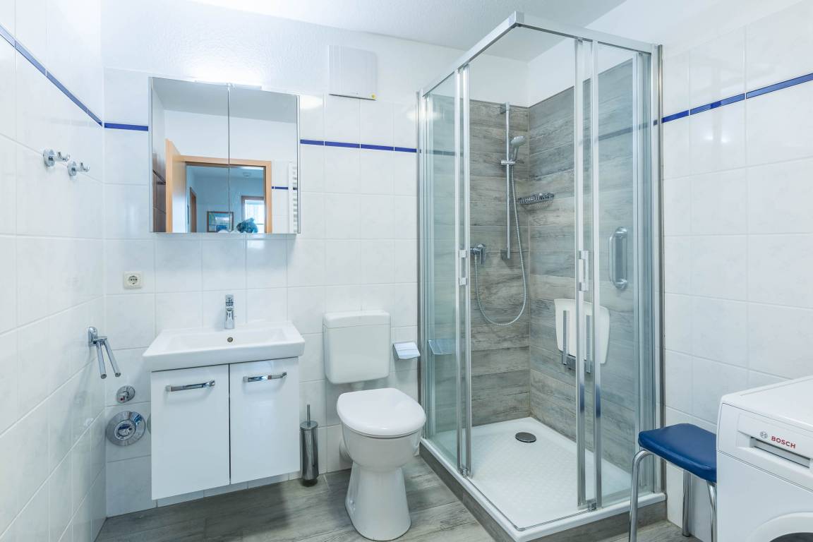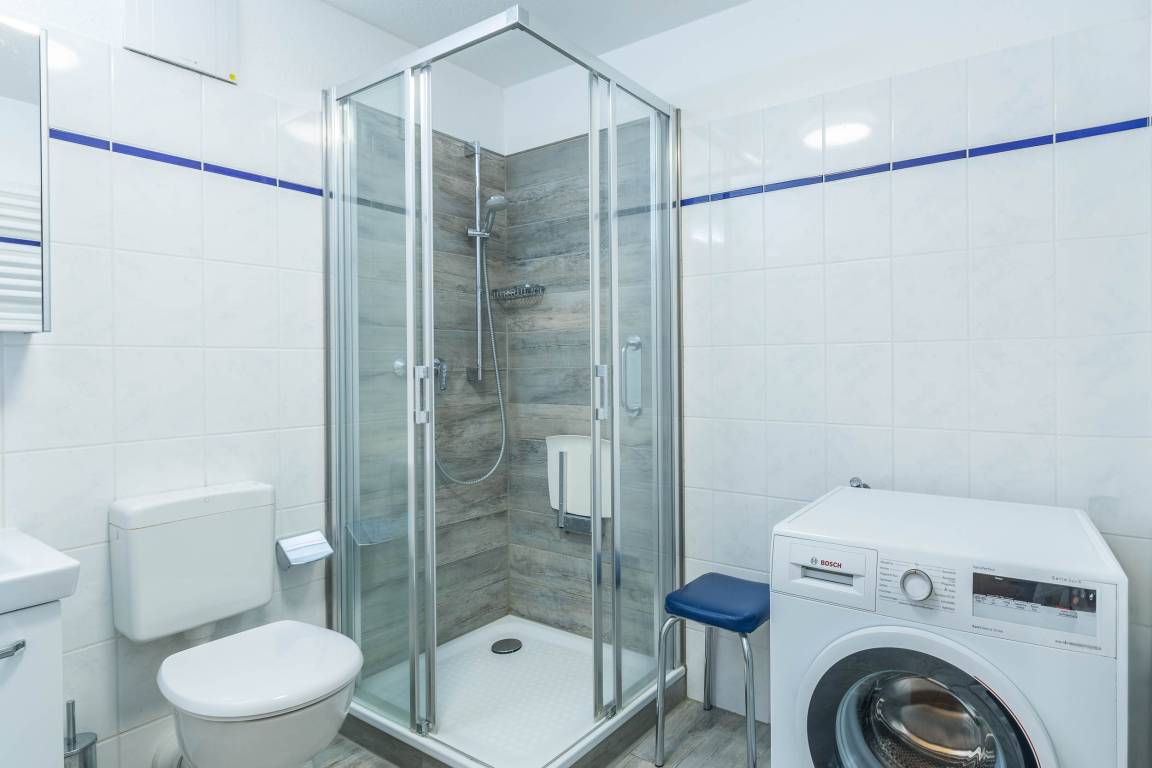 Das innenliegende Badezimmer ist mit Dusche, WC, kostenfreie Waschmaschine und Föhn ausgestattet. Die Handtuchheizung sorgt hier zusätzlich für wohlige Wärme.