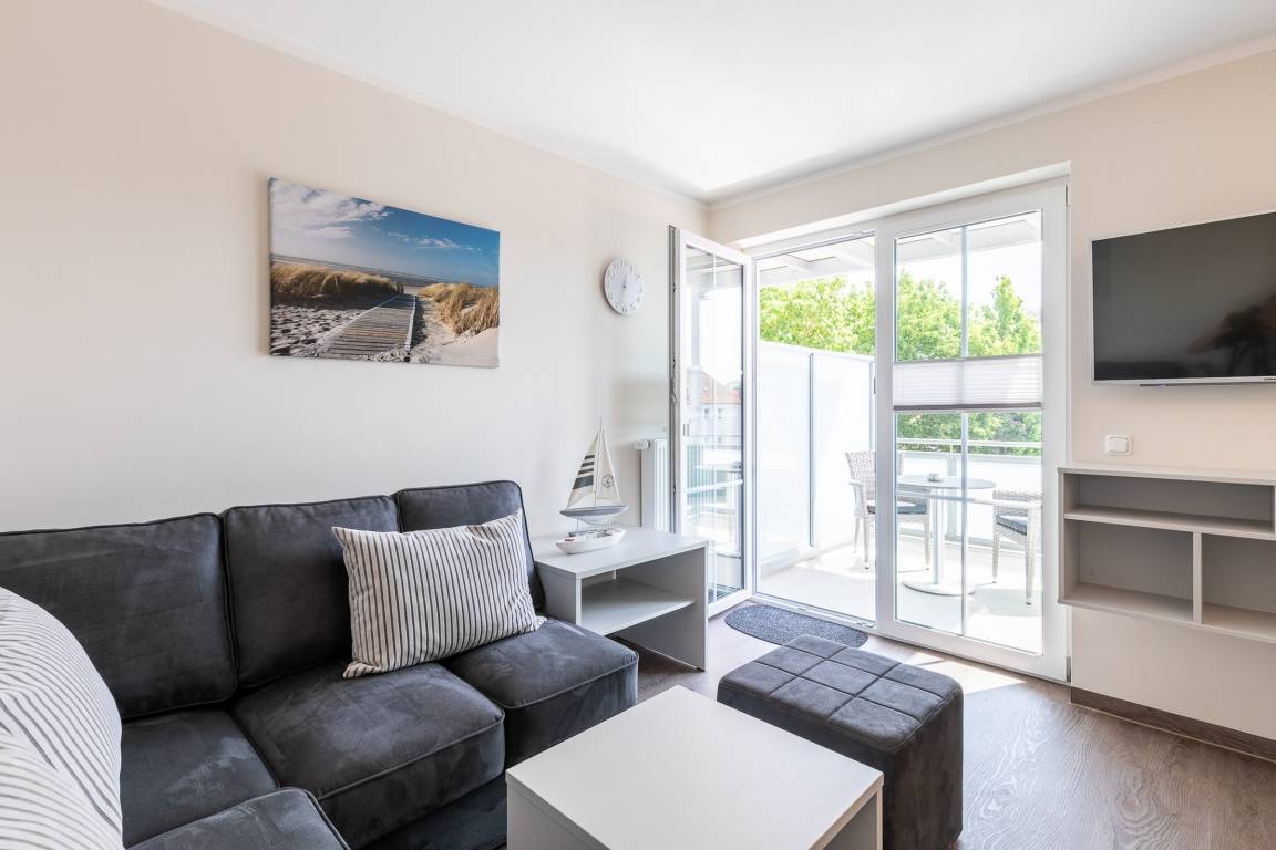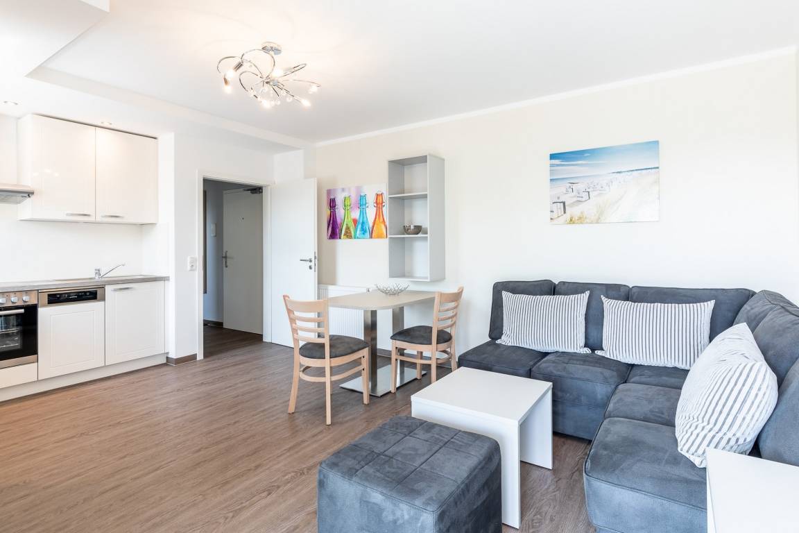 Die 2-Zimmer-Ferienwohnung im 1. Obergeschoss in Boltenhagen mit verbundenem Wohn- und Essbereich ist ideal für einen Ostseeurlaub zu Zweit.