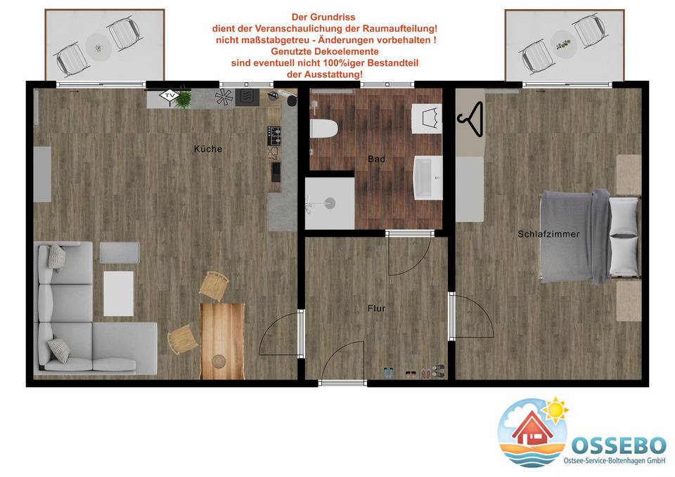 42 m² Ferienwohnung ∙ 1 Schlafzimmer ∙ 2 Gäste