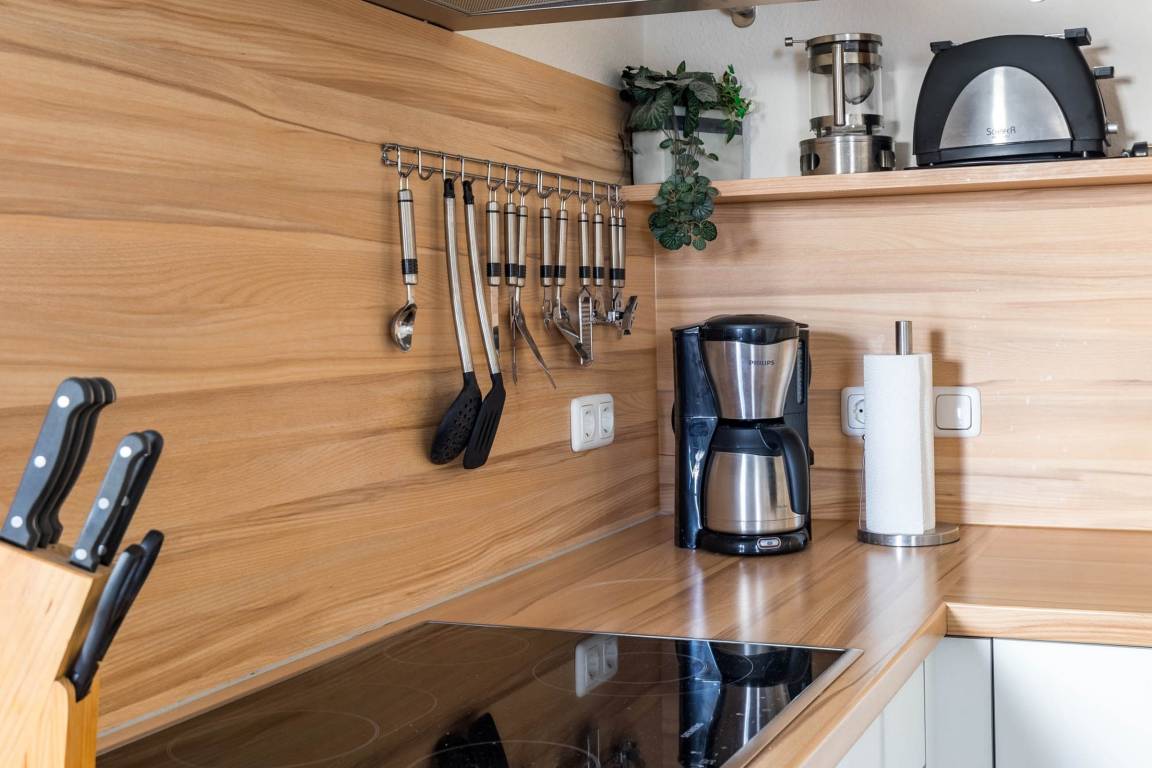 Für Selbstversorger ist auf dieser Ebene die integrierte Küchenzeile mit Kühlschrank inkl. Gefrierfach, Spülmaschine, Backofen und Ceranfeld bestens ausgestattet. Kaffeemaschine, Toaster, Wasserkocher und einiges mehr sind ebenfalls vorhanden.