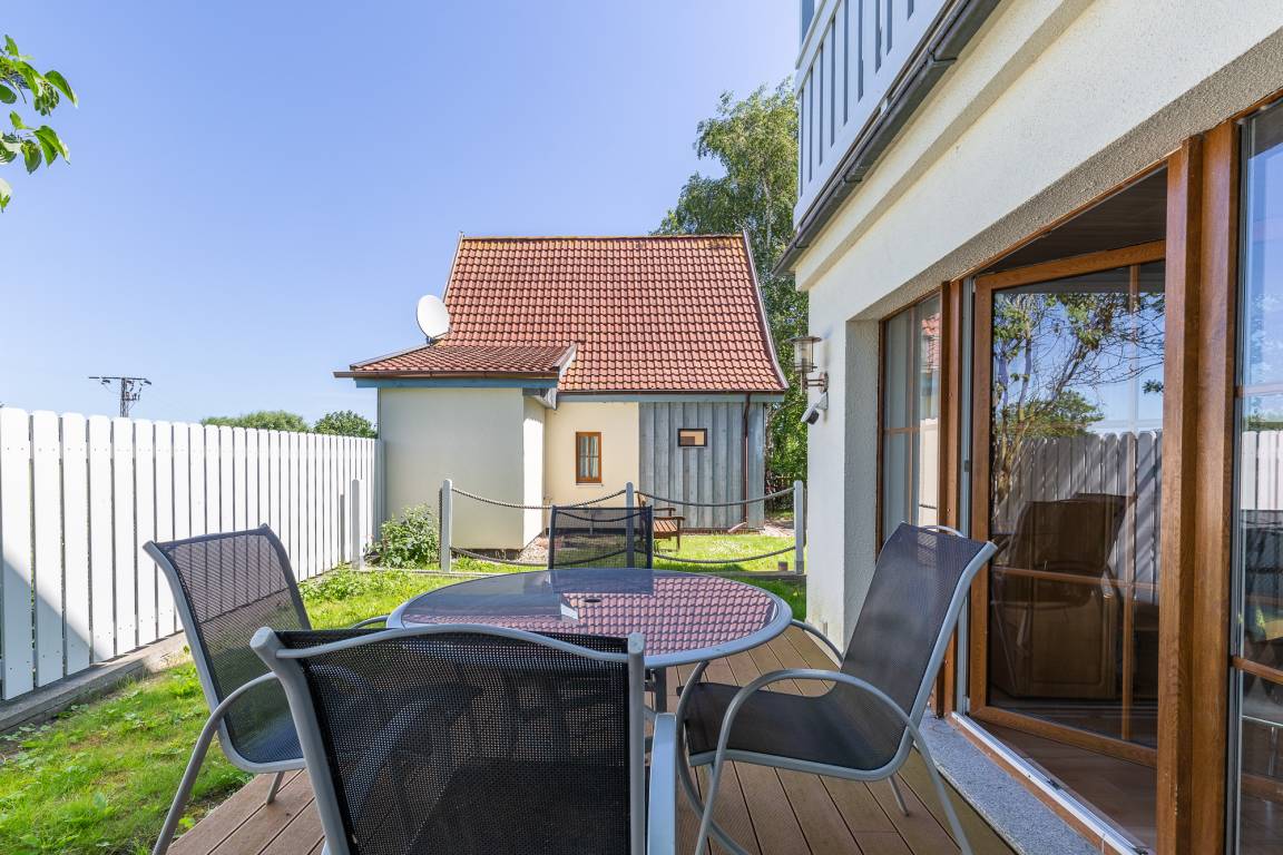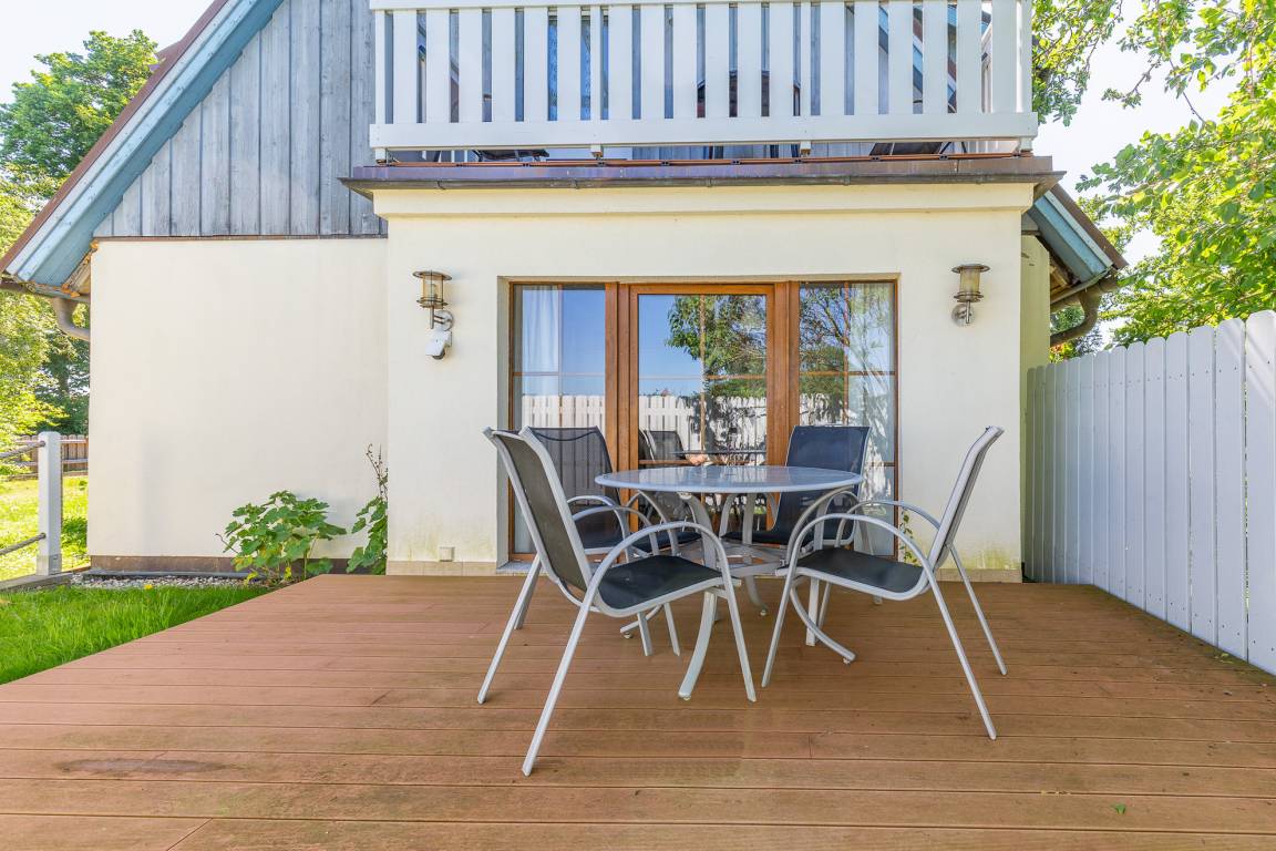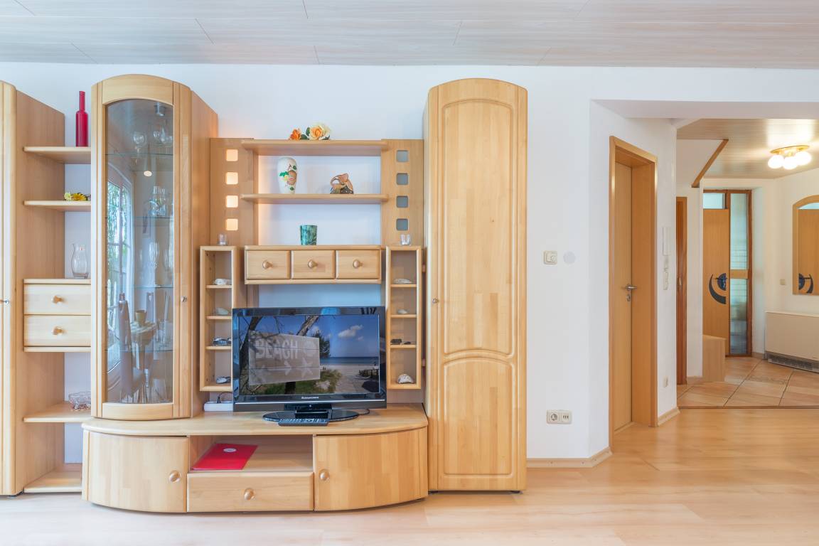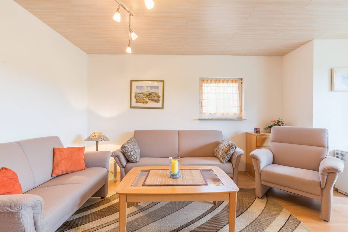 Die geräumige Ferienwohnung Nr. 1 ist eine 3-Zimmer-Wohnung im Erdgeschoss und bietet Platz für max. 4 Personen. Im lichtdurchfluteten Wohnraum befindet sich eine bequeme Sitzecke, die auch abends zum Entspannen einlädt. Für genügend Abwechselung sorgen der Flatscreen und das Radio. Der sorgfältig eingerichtete Wohn- und Essbereich sowie das Wannenbad tragen zusätzlich zur Erholung bei. Eine schöne Terrasse schließt sich am Wohnbereich an. Hier laden Gartenmöbel zum Verweilen ein.