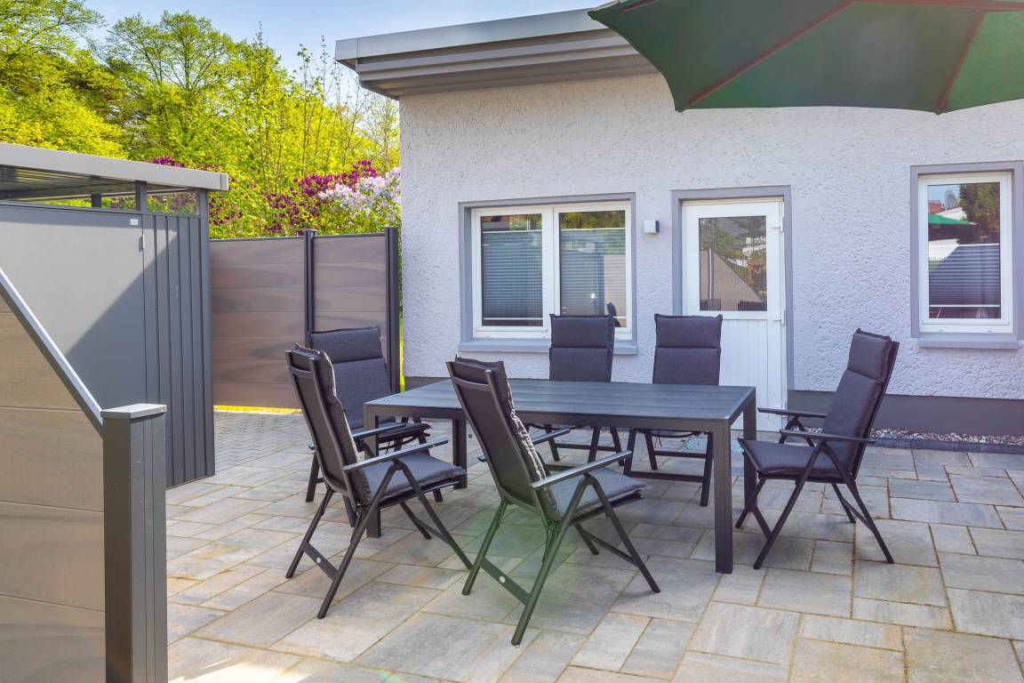 Auf der möblierten Terrasse können Sie die frische Ostseeluft genießen. Das große Rasengrundstück grenzt direkt an das Grundstück. Der Bungalow ist auch für Senioren geeignet, da er sich im Erdgeschoss befindet und einen komfortablen Zugang bietet. Der Strand ist nur 250 Meter entfernt und leicht zu Fuß erreichbar. Rauchen ist nur auf der Terrasse gestattet.