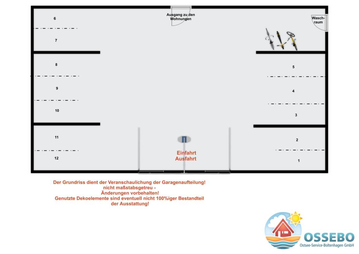 Es gibt es in der Tiefgarage zwei Fahrradständer. Hier können Sie Ihre geliehenen oder mitgebrachten Fahrräder [&] Co. unterbringen.