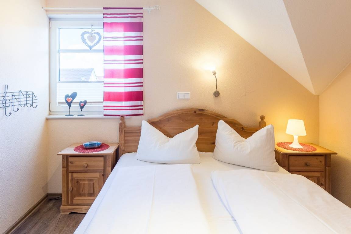 Im Dachgeschoss als 2. Ebene finden Sie die zwei weitere Schlafzimmer: das Erste mit 2 Einzelbetten (90x200) und kleiner Sitzecke begehen Sie direkt vom Flur aus, von diesem Zimmer aus gelangen Sie dann in das zweite Schlafzimmer auf dieser Ebene mit einem Einzelbett (90x200) und Kleiderschrank.