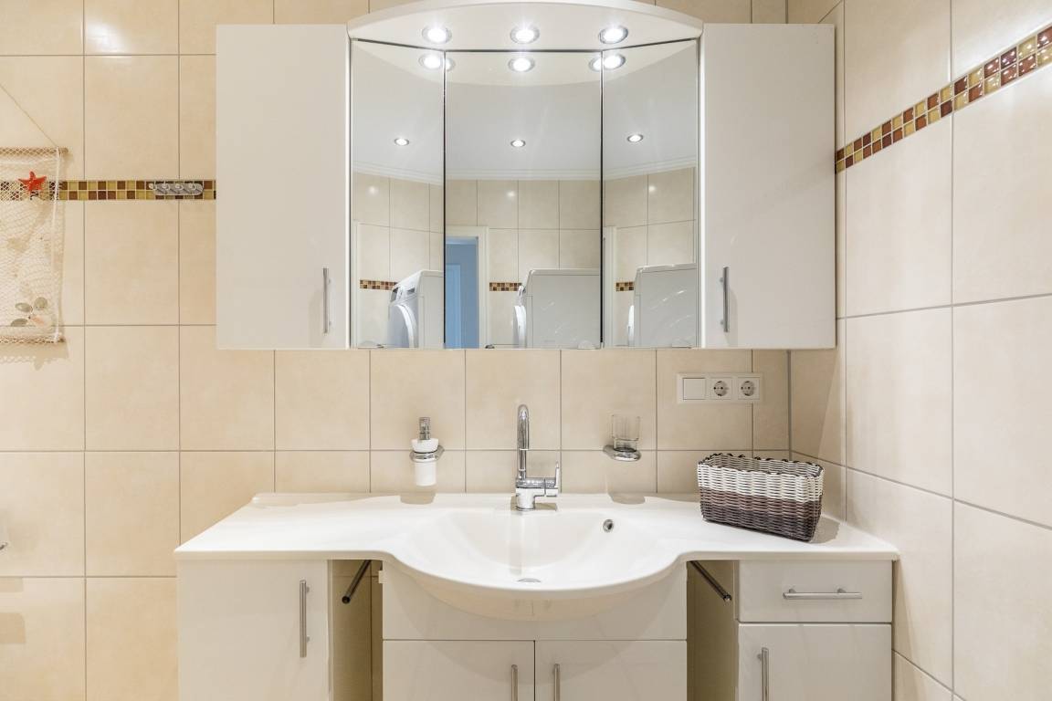 Weiterhin befindet sich auf dieser Etage ein Schlafzimmer mit einem Doppelbett (160x200) und Kleiderschrank sowie ein helles Bad mit Dusche/ WC, Trockner und Waschmaschine (gegen Gebühr).