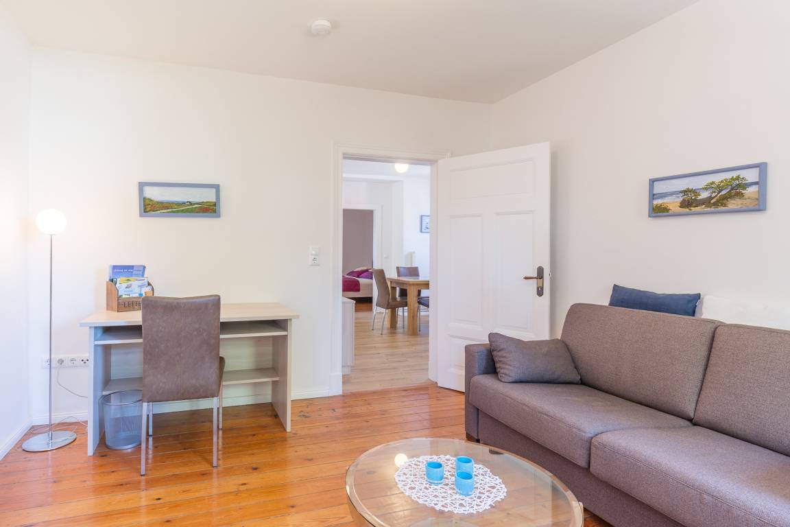 Die Ferienwohnung „Blaues Haus" ist eine 3-Zimmer-Ferienwohnung für bis zu 4 Personen. Das mit 96 qm großzügige Ferienapartment liegt im 1. OG des „blauen Hauses" direkt am Kurpark im Zentrum von Boltenhagen. Zum feinsandigen Sandstrand sind es von hier nur etwa 100 m. Die zentrale Lage an der Mittelpromenade ermöglicht Ihnen für den entspannten und erholsamen Urlaub kurze Wege zum Strand und zu den Restaurants.