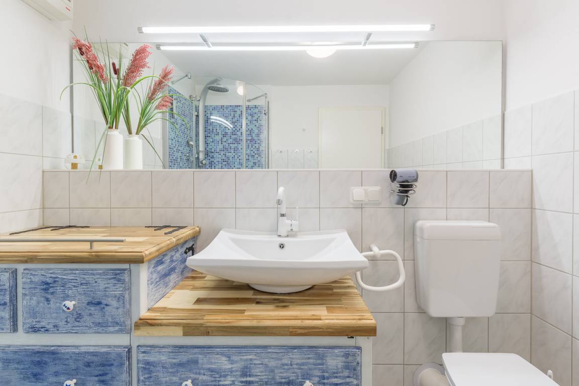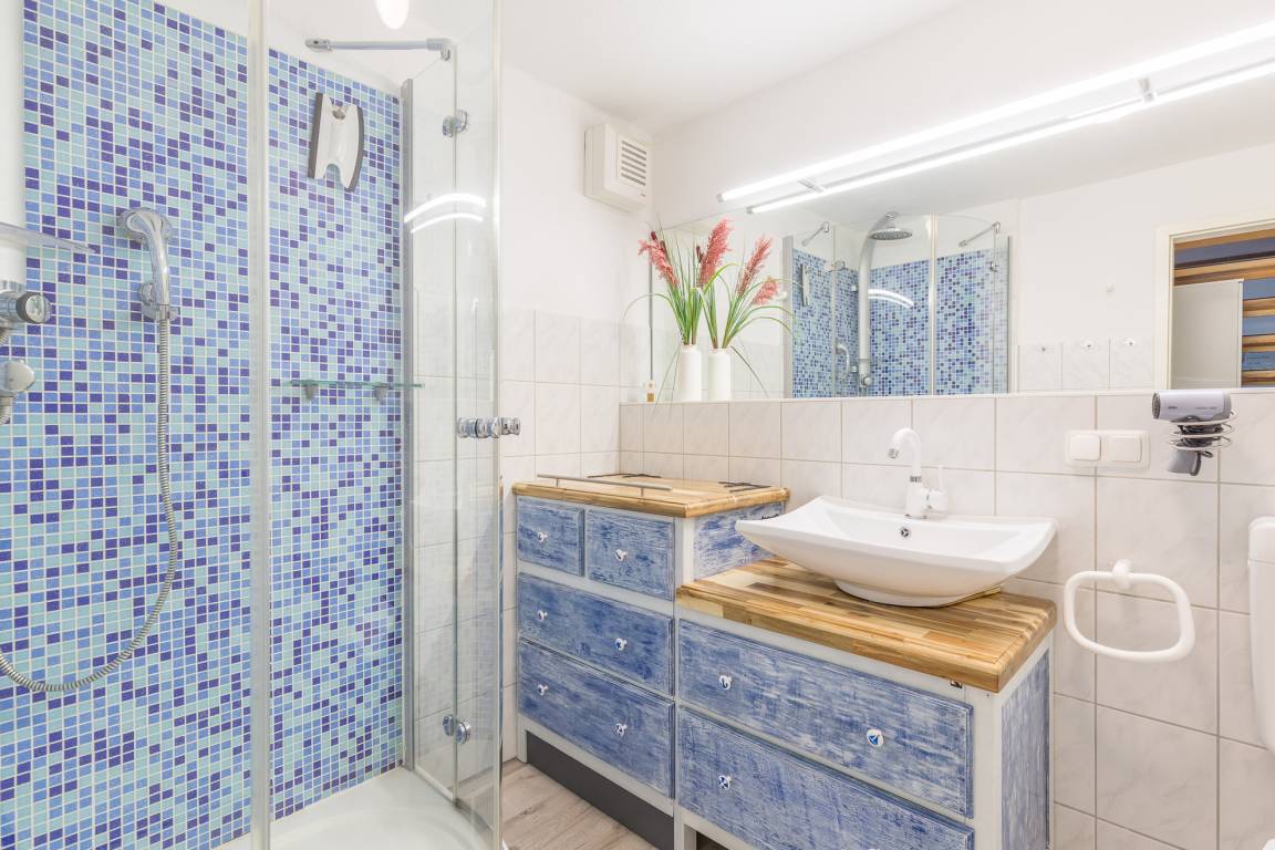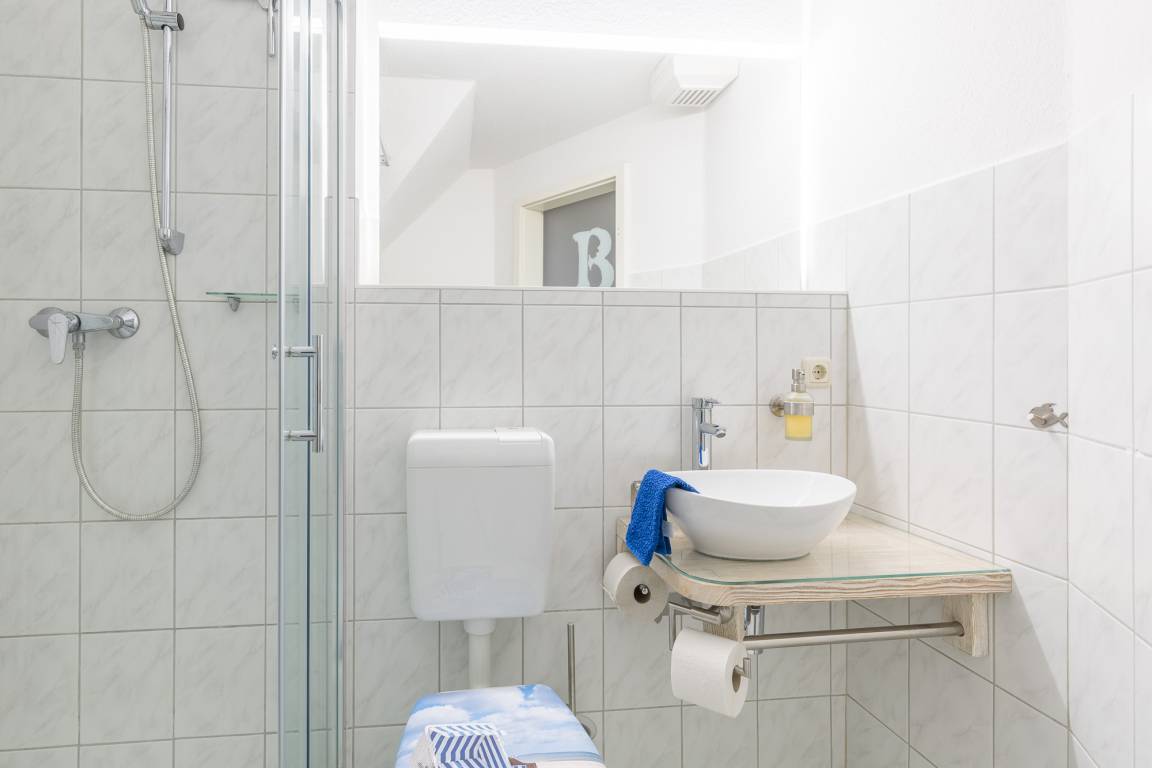2 vollwertige Duschbäder mit jeweils einer Dusche und einem WC unterstreichen die Großzügigkeit der Ferienwohnung.