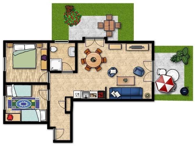 Die gemütliche 3-Zimmer-Wohnung im Erdgeschoss bietet auf rund 66qm Wohnfläche eine Ausstattung für 4 Personen.