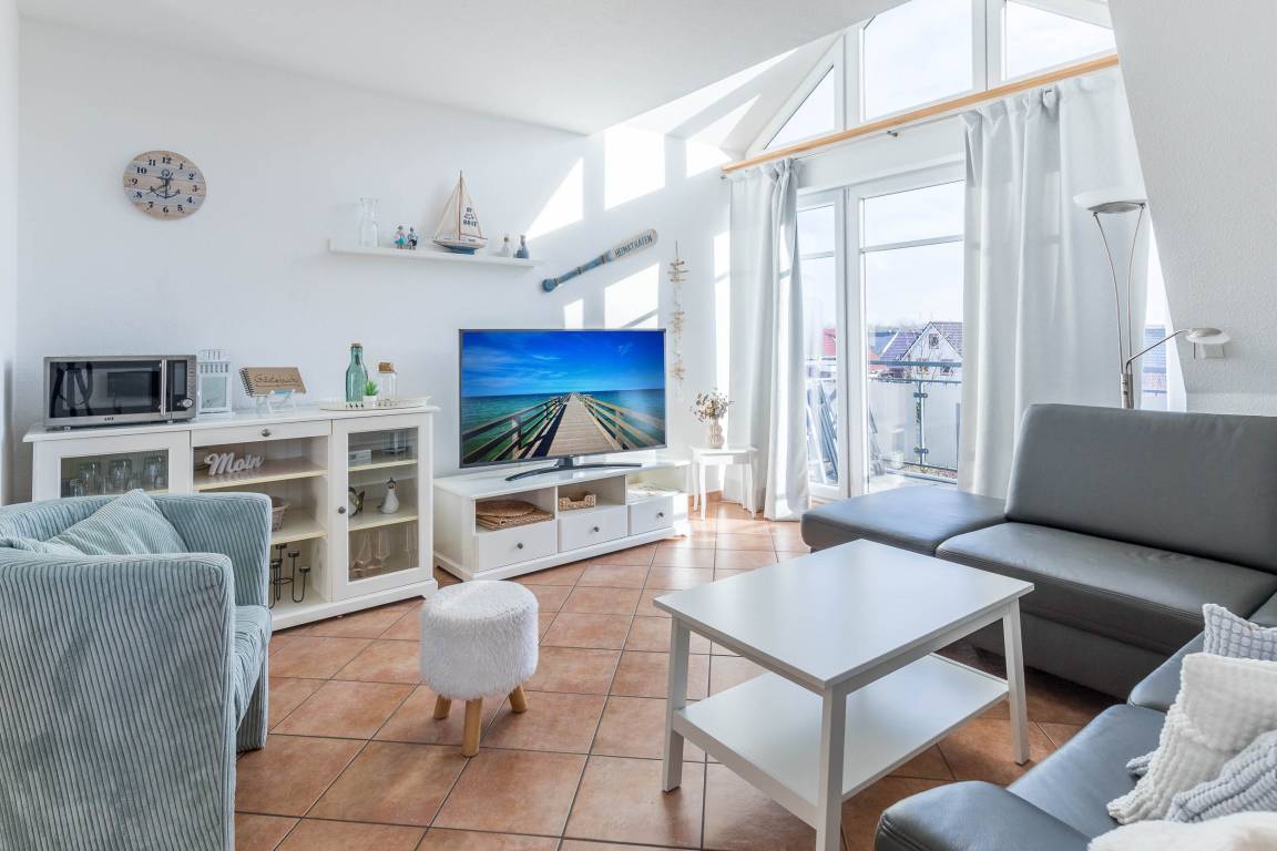 In der kindergerechten 3-Zimmer-Wohnung im 2. OG können auf rund 62qm Wohnfläche bis zu 4 Personen + Kleinkind ihren Urlaub verbringen.