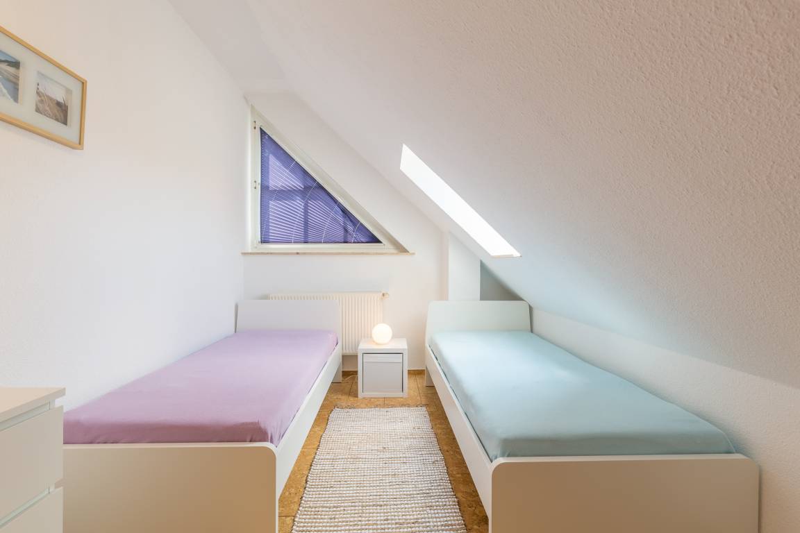 Es gibt drei Schlafzimmer im Haus, die alle individuell ausgestattet sind. Im Schlafzimmer mit dem Doppelbett befindet sich ein 2. TV. Es gibt ein Schlafzimmer mit einem ausziehbaren Tagesbett mit 2 Matratzen (Liegefläche ausgezogen 160x200 cm) und ein Schlafzimmer mit 2 Einzelbetten.
