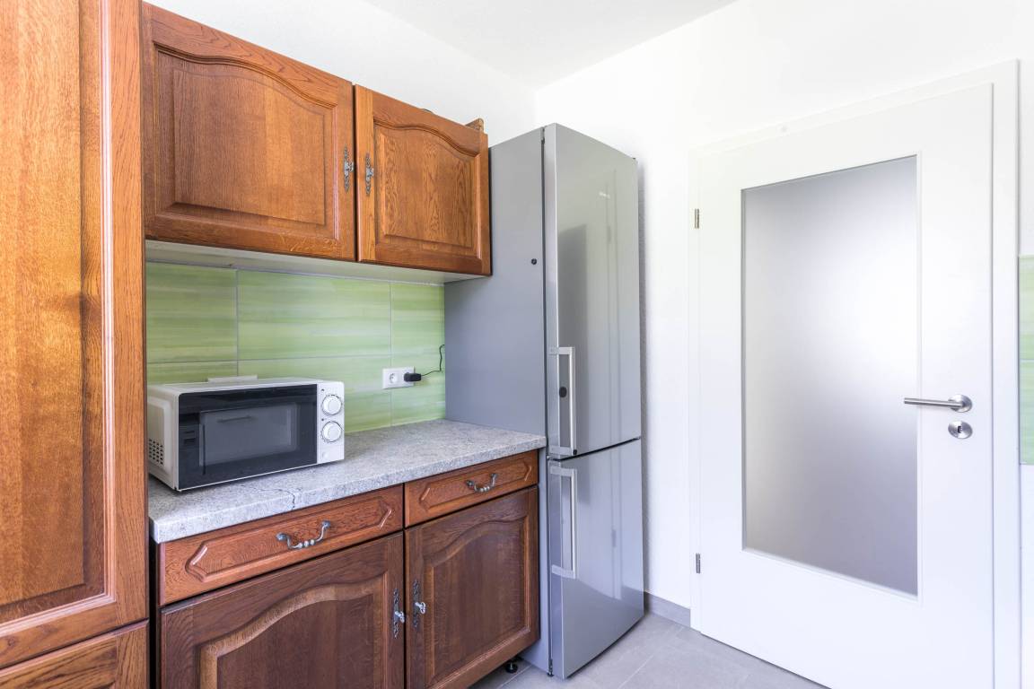 In der separaten Küche ist ausreichend Platz zum Kochen. Die Küchenzeile bietet so gut wie alles, was Sie zum Kochen und Backen benötigen. So finden Sie neben Backofen, Herd mit Cerankochfeld, Kühlschrank mit Gefrierfach auch einen Geschirrspüler, Wasserkocher, Toaster und Kaffeemaschine. Natürlich gibt es auch viele nützliche Utensilien dazu, wie Geschirr, Besteck, Gläser, Töpfe, Pfannen uvm.