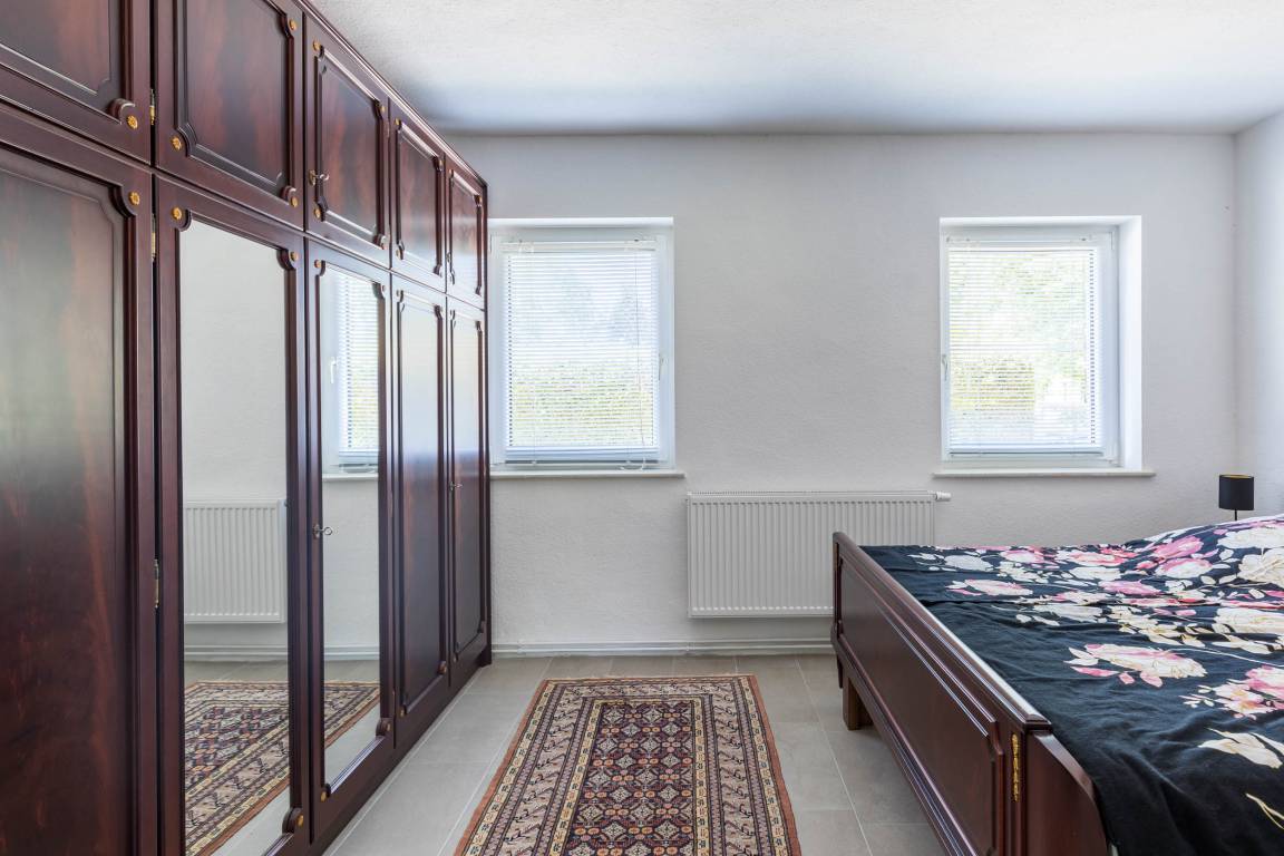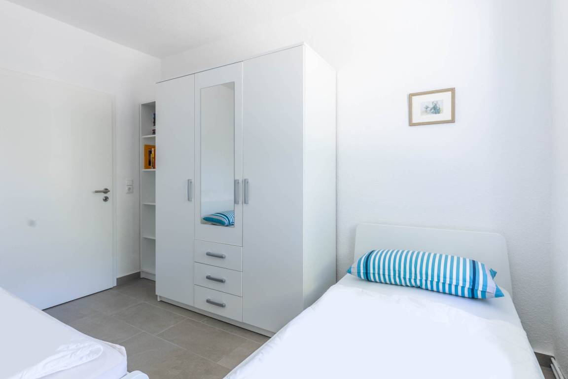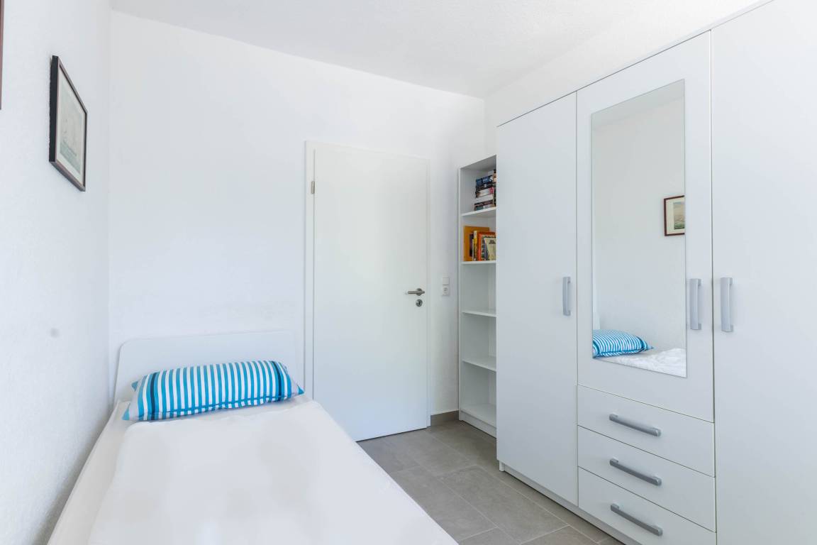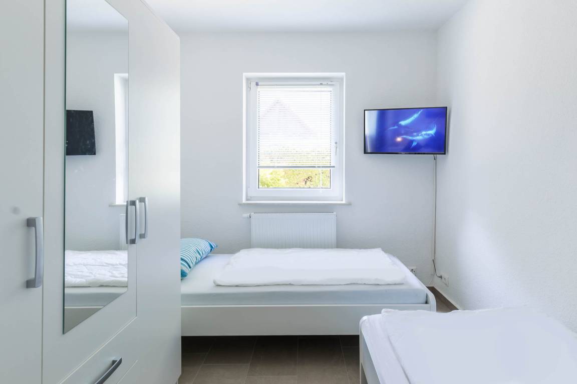 Im Schlafzimmer steht Ihnen ein bequemes Doppelbett (180x200cm), ein großer Kleiderschank sowie ein kleinerer Schrank zur Verfügung. Das Gäste-/ Kinderzimmer ist mit zwei Einzelbetten (je 90x200cm), einen Kleiderschrank sowie SAT-TV eingerichtet.