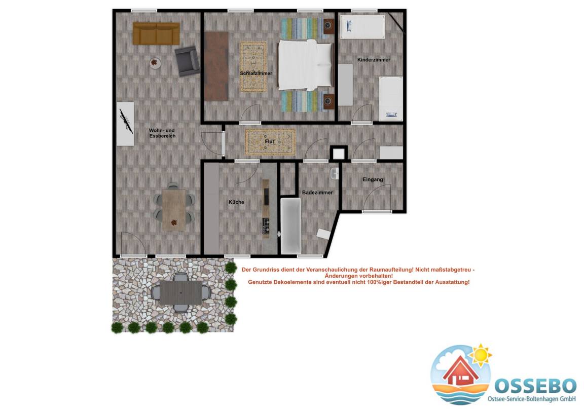 Die komfortabel und vor allem familiengerecht eingerichtete 3-Zimmer-Ferienwohnung im Erdgeschoss bietet auf 70qm Wohnfläche Platz für bis zu 4 Gäste.