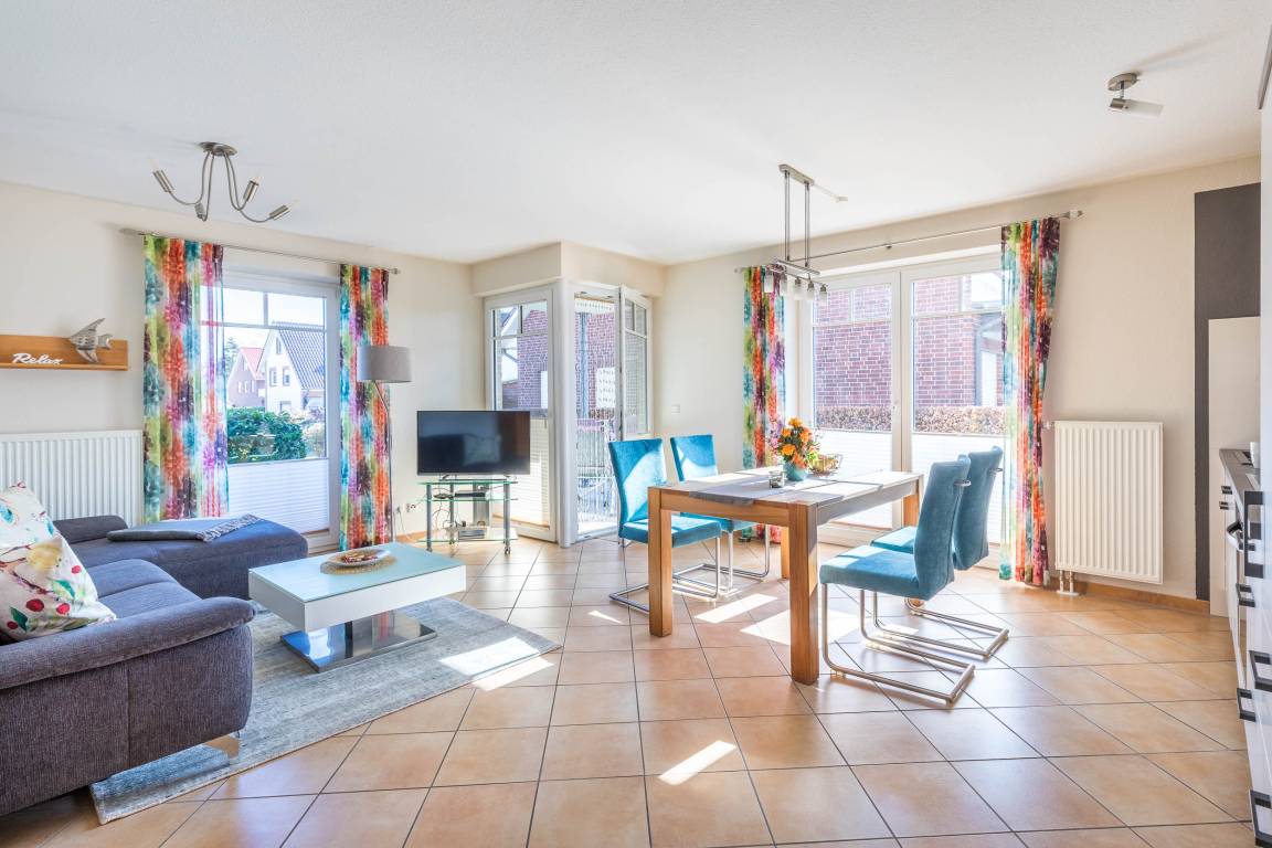 In dieser 3-Zimmer-Wohnung im EG können Sie auf rund 68qm Wohnfläche herrlich mit bis zu 4 Gästen + Kleinkind Ihren Ostseeurlaub verbringen.