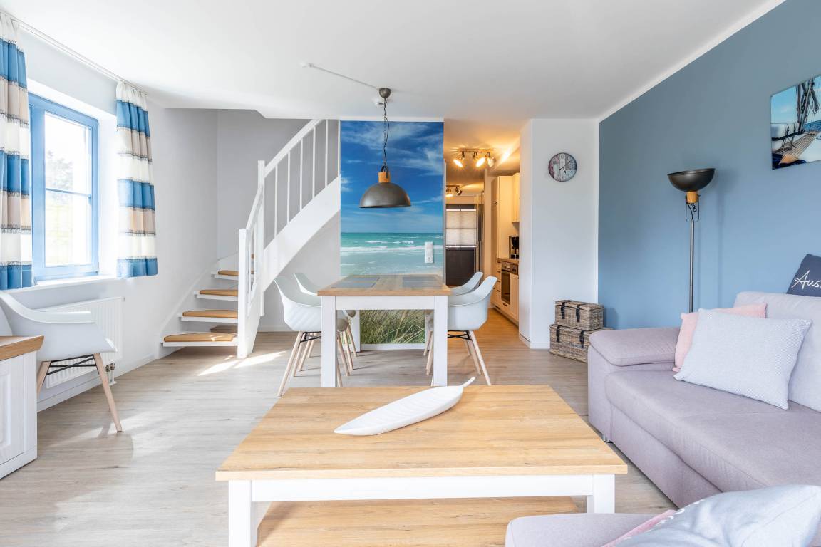 Bei unserer großzügigen 4-Zimmer-Ferienwohnung im 1.OG handelt es sich um eine schicke Maisonette, die sich mit 68qm Wohnfläche über zwei Wohnebenen erstreckt.