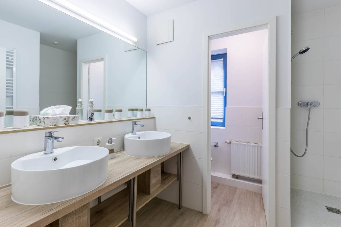 Auch das helle Badezimmer (mit Fenster) mit Dusche und ein separatem WC stehen Ihnen im 1.OG zur Verfügung.