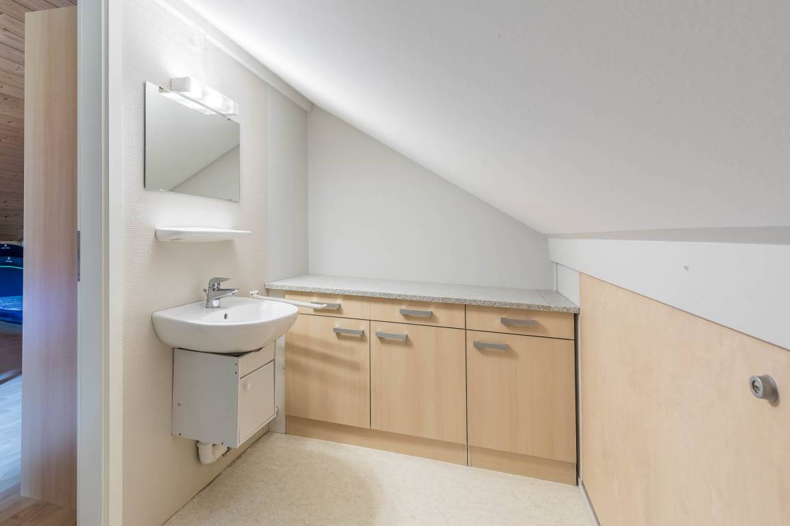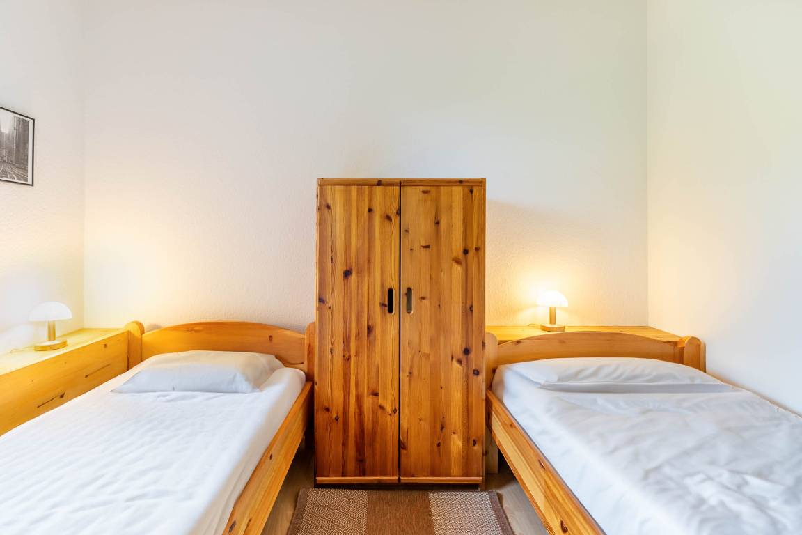 Weiterhin befindet sich in der unteren Ebene ein Gäste-/ Kinderzimmer mit zwei Einzelbetten. Ein kleines Schränkchen kann als Ablage für Kleidung o.ä. genutzt werden.