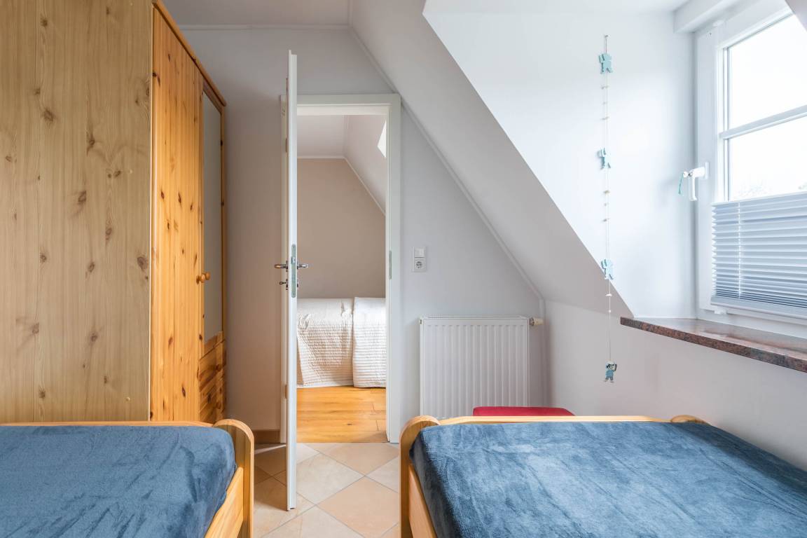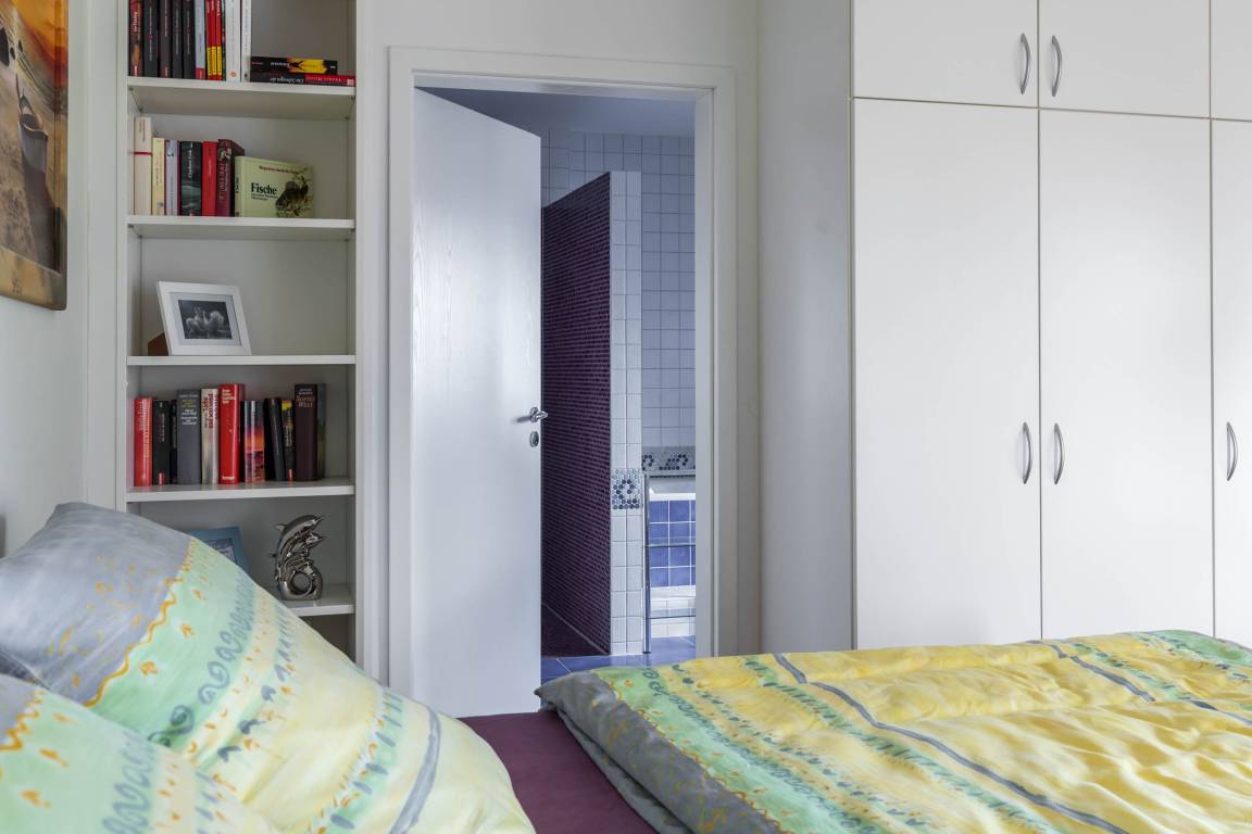 Die Wohnung ist mit 3 separaten Schlafzimmern ausgestattet: Im größten Schlafzimmer befinden sich neben einem höheren Doppelbett auch ein weiterer Flatscreen-TV zur Multimediaunterhaltung. Die Gästezimmer sind einmal mit zwei Einzelbetten und einmal mit einem Doppelbett eingerichtet. Für genügend Stauraum Ihrer Urlaubsgarderobe ist gesorgt. Fliegengitter an den Fenstern sorgen für ruhige Nächte bei offenem Fenster.