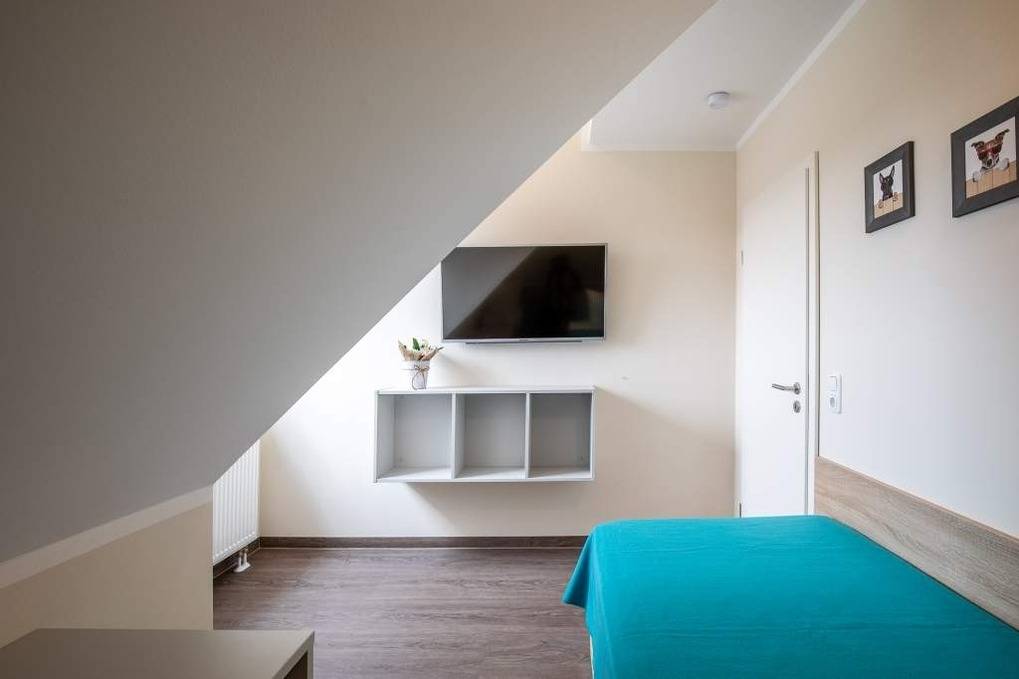 Die helle, farblich sehr stimmig eingerichtete 3-Zimmer-Ferienwohnung im 2.OG verfügt auf 75qm Wohnfläche über eine sehr moderne Ausstattung für 4 Gäste.