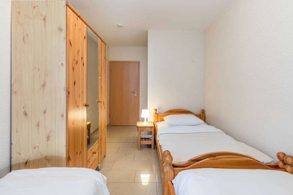 Weiterhin bietet die Ferienwohnung ein Schlafzimmer mit Doppelbett und Kleiderschrank sowie ein Gästezimmer mit 3 Einzelbetten. Auch hier steht ein Kleiderschrank für Ihre Garderobe bereit.