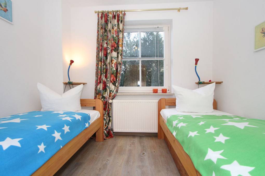 Während im Schlafzimmer ein Doppelbett anzutreffen ist, gibt es im Kinder-/ Gästezimmer zwei Einzelbetten. Beide Zimmer sind zudem mit einem Kleiderschrank für Ihre Garderobe ausgestattet.