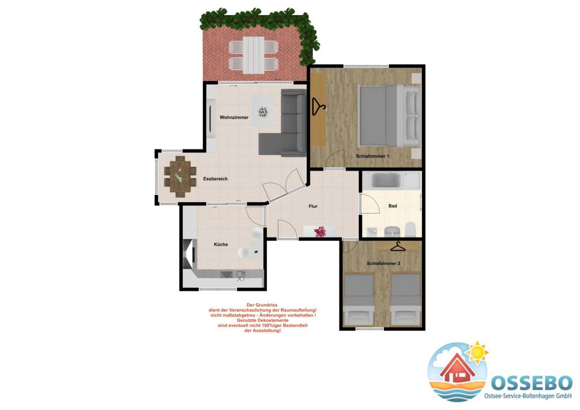 75 m² Ferienwohnung ∙ 2 Schlafzimmer ∙ 6 Gäste
