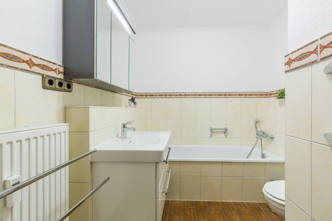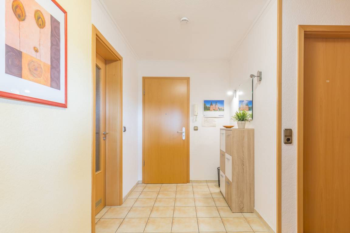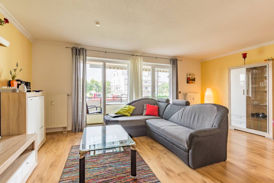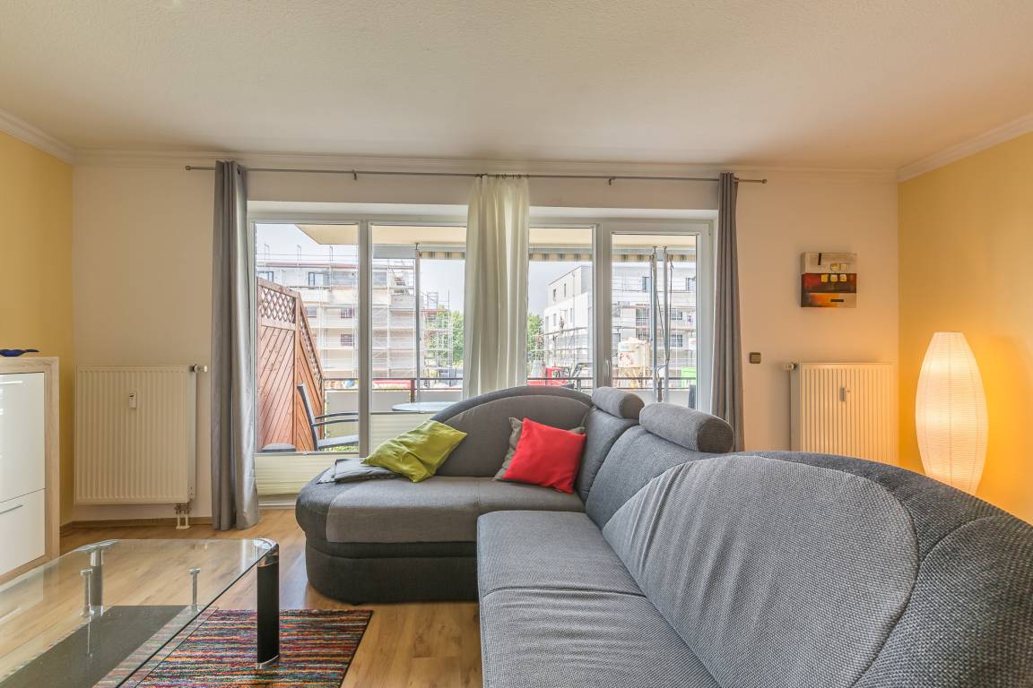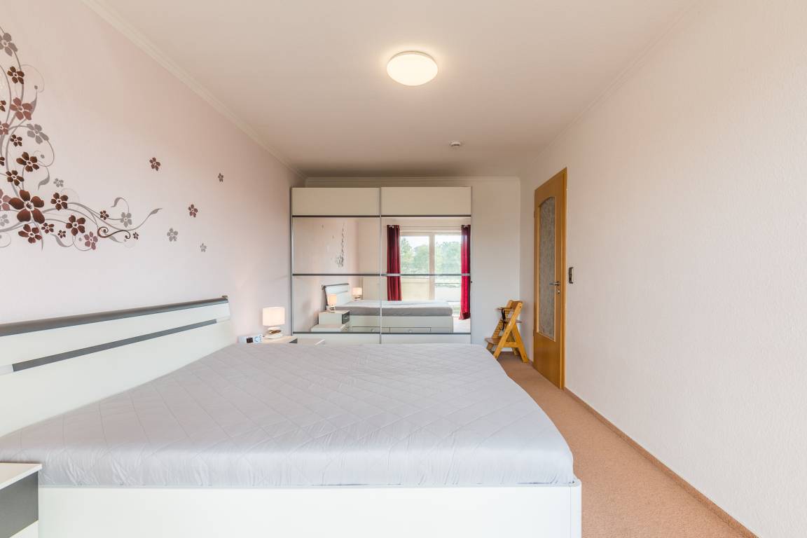 Die komplett ausgestattete Küche mit Gefrierschrank und großer Ablagefläche liegt etwas separat zum Wohnzimmer mit der großzügig gehaltenen Wohnlandschaft aus Sofa und bequemen Einsitzern und einer kleinen Essecke für 4 Personen im hinteren Wohnbereich. Das separate Schlafzimmer enthält ein Doppelbett. Für die dritte Person steht das ausziehbare Schlafsofa im Wohnzimmer zur Verfügung. In der Wohnung ist WLAN verfügbar. In der abschließbaren Garage ist genügend Platz für 3 Fahrräder. Bedenken Sie bitte bei der Anreise, das die Einfahrtshöhe für die Garage maximal 180cm beträgt!