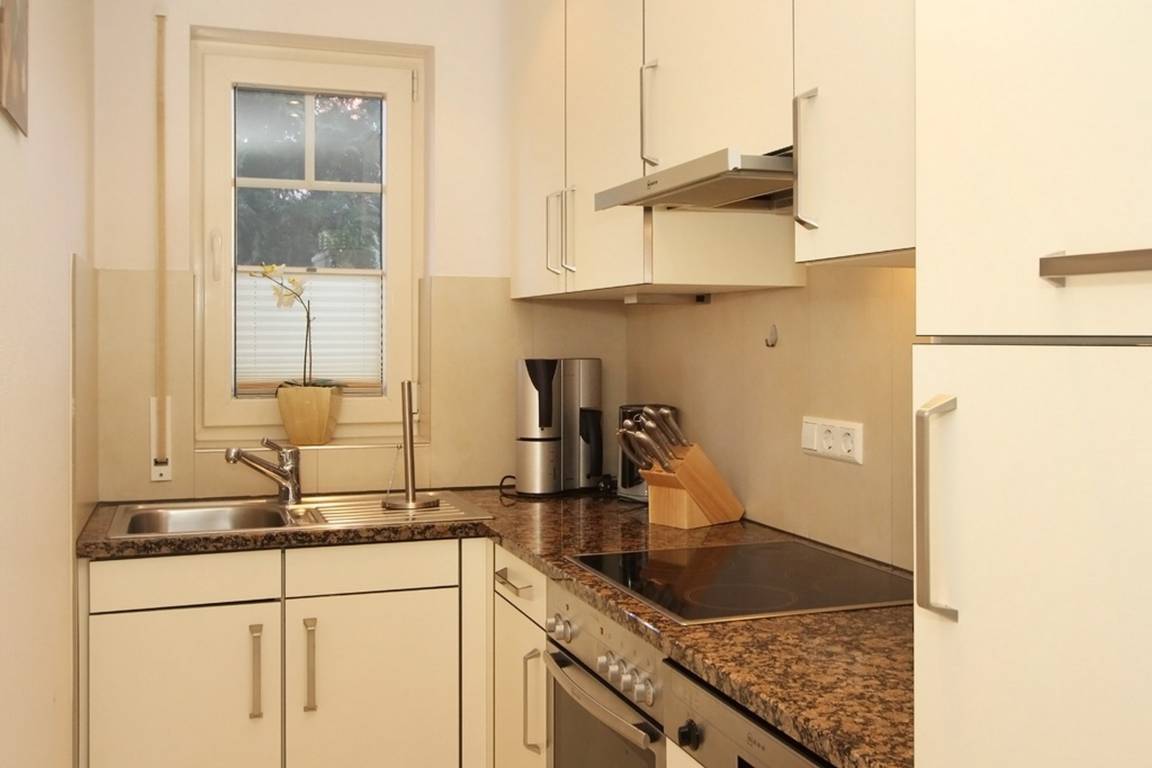 Im Erdgeschoss befindet sich neben einer mit hochwertigen Elektrogeräten und sämtlichem Zubehör ausgestatteten Küche inklusive Essecke ein gemütlicher Wohnbereich mit einem 50 Zoll Flachbildfernseher mit WLAN, DVD-Player und Stereoanlage. Auch ein Reisebettchen könnte hier bei Bedarf aufgestellt werden.