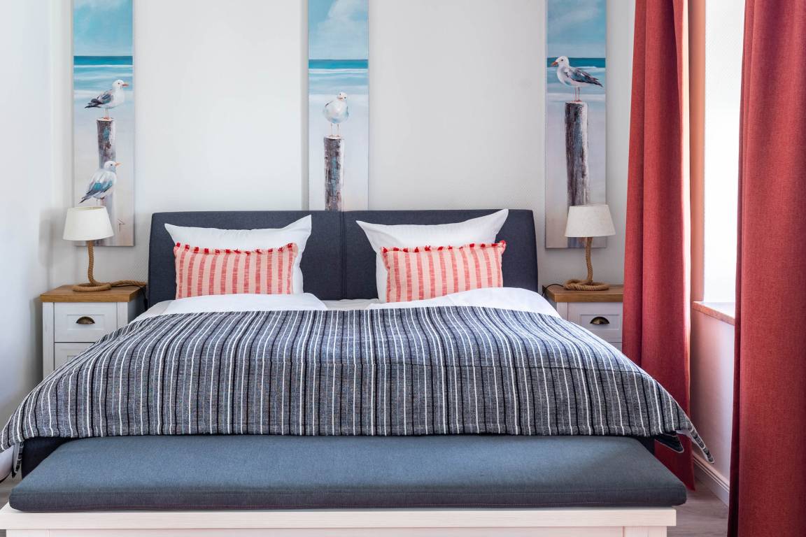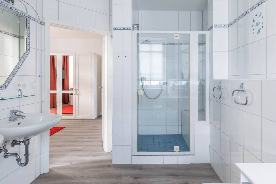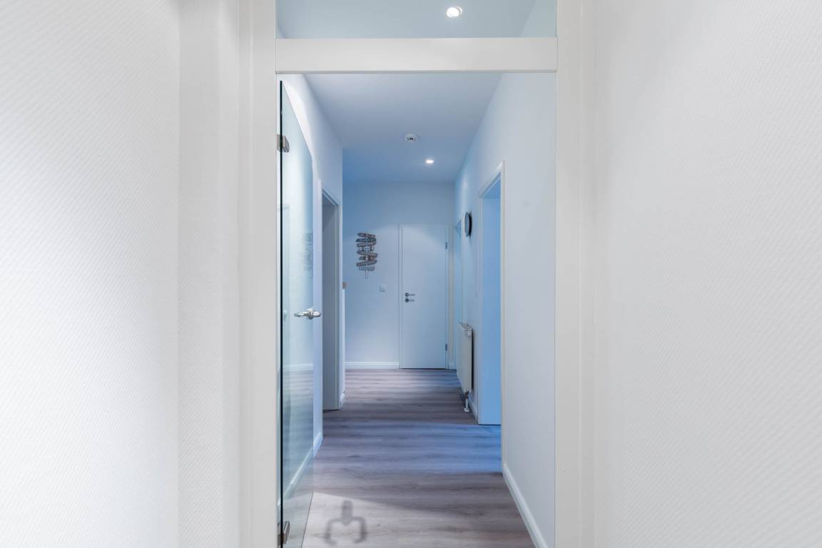 With high ceilings and wide window fronts, the flat offers you a stately home by the sea with plenty of space and every conceivable comfort for relaxing and working.