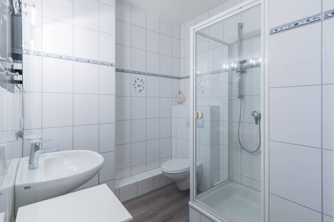 Das zweite, innenliegende, Badezimmer ist mit Dusche und WC ausgestattet.