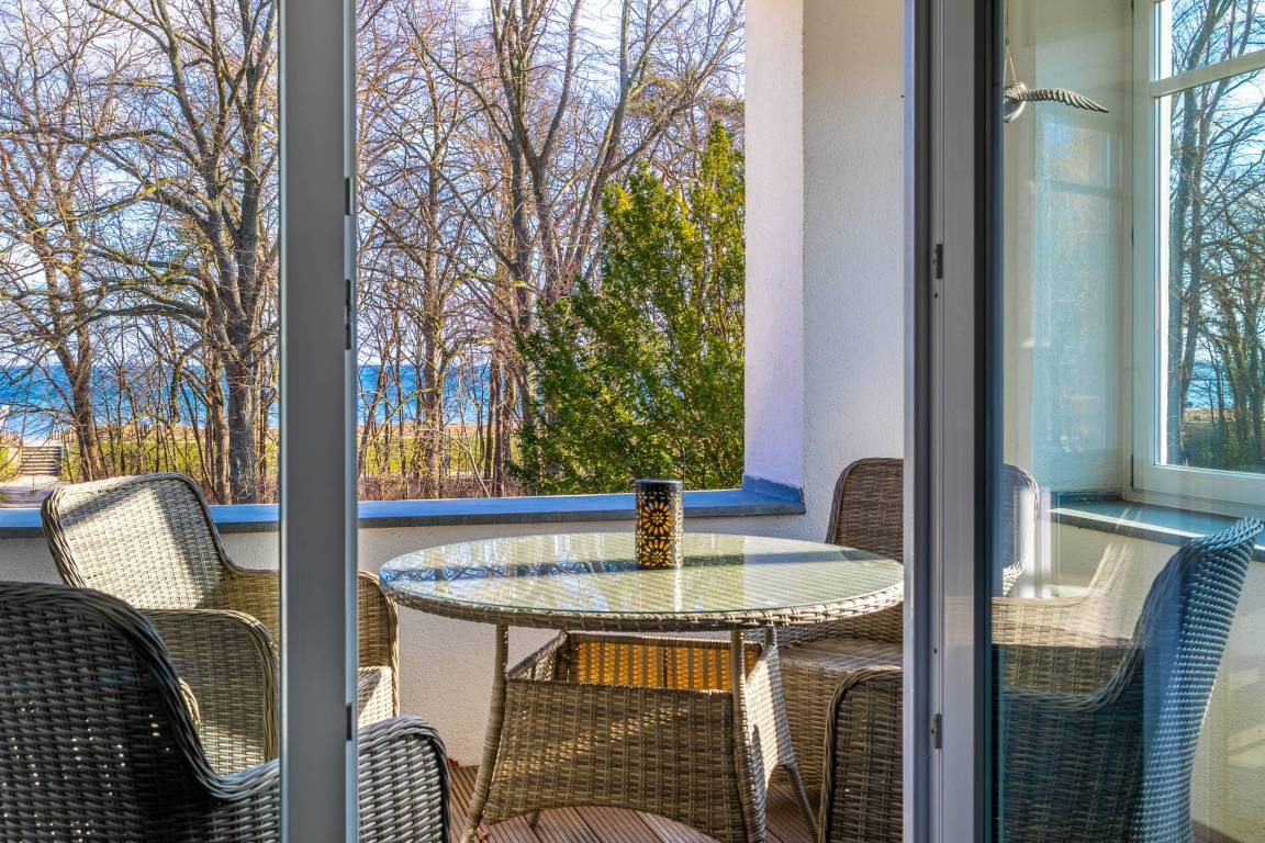 Von Frühjahr bis Herbst lädt die überdachte Loggia Richtung Ostsee mit Wärmestrahler und bequemer Bestuhlung dazu ein, die Abende im Freien zu verbringen und das Rauschen der Ostsee zu genießen. Für die kühlere Jahreszeit ist die geräumige, kostenfreie finnische Sauna in der Ferienwohnung ein zusätzlicher Wohlfühl-Faktor.