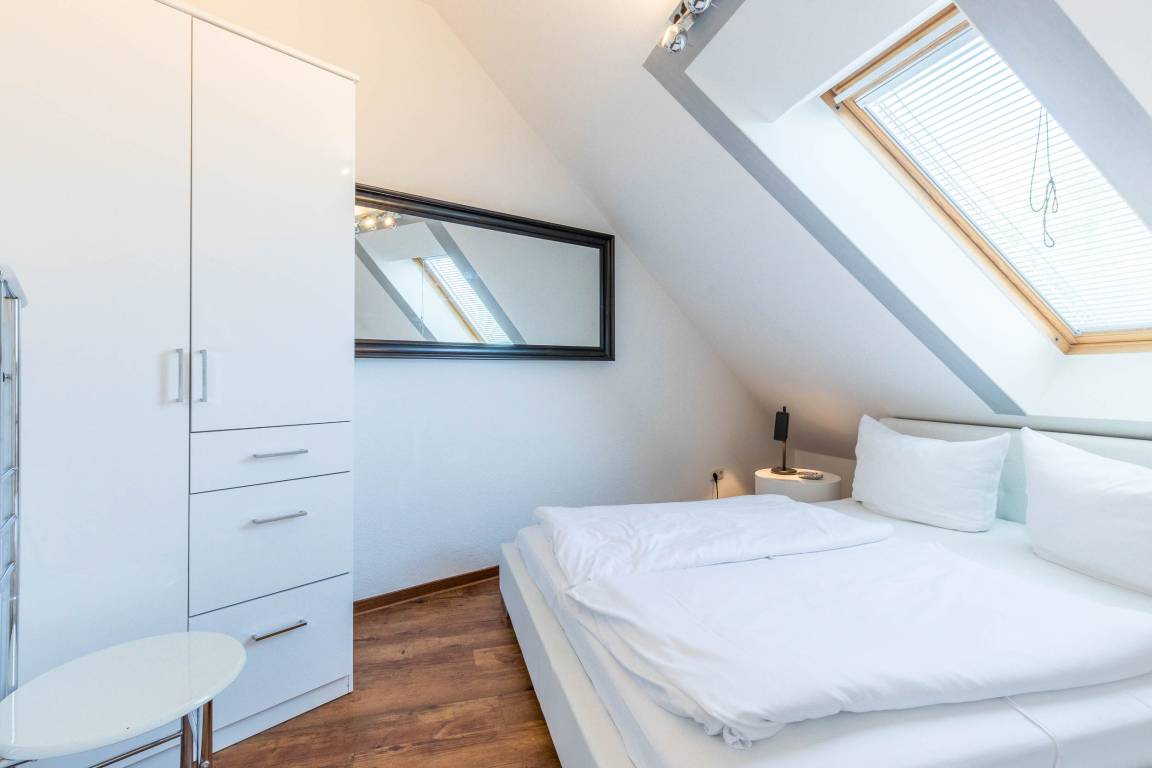 Die hell gestaltete und moderne 3-Zimmer-Ferienwohnung im 1. Obergeschoss bietet auf rund 70qm Wohnfläche Platz für 4 Gäste + Kleinkind. Sie erstreckt sich über 2 Ebenen.