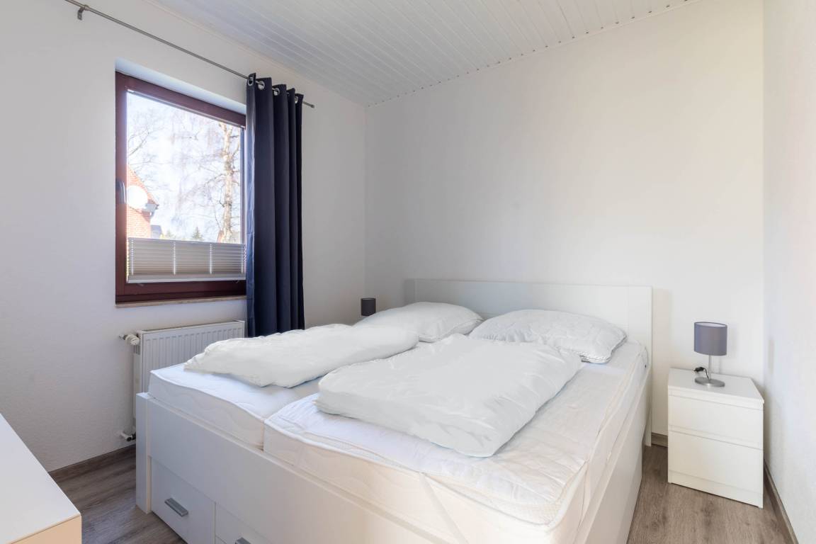 Das Schlafzimmer ist mit einem Doppelbett (180x200cm) und einer Kommode eingerichtet. Ein zusätzlicher Kleiderschrank hat im Wohnbereich seinen Platz gefunden. Die 3. Person findet auf der Couch im Wohnzimmer einen Schlafplatz (Liegefläche 100x200cm).