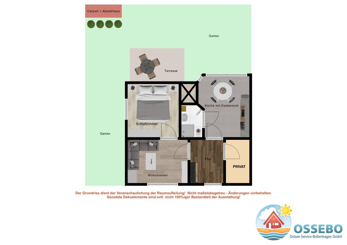 Die strandnahe 2-Zimmer-Ferienwohnung befindet sich im Erdgeschoss des Hauses und ist mühelos über die Eingangstreppe zu erreichen. Sie bietet eine komfortable Ausstattung für 3 Gäste.