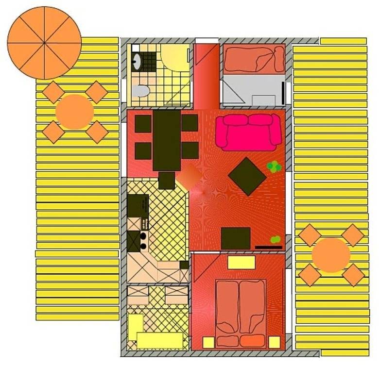 55 m² Ferienhaus ∙ 2 Schlafzimmer ∙ 3 Gäste