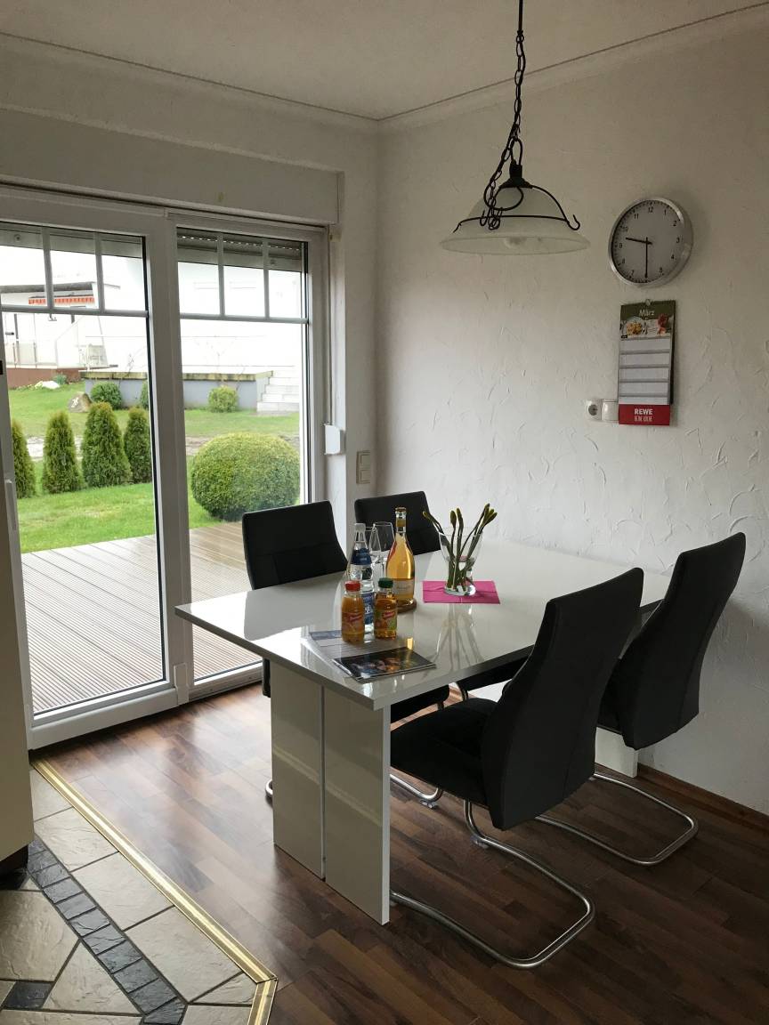 Starten Sie mit einem guten Frühstück in den Tag, die großzügige Küchenzeile ist mit allem ausgestattet, was Sie für eine Selbstverpflegung benötigen. Am vorhandenen Esstisch können Sie Ihre Mahlzeiten einnehmen.