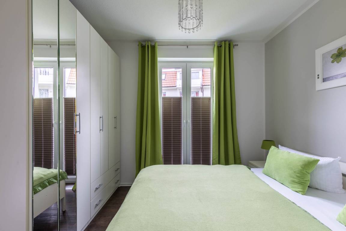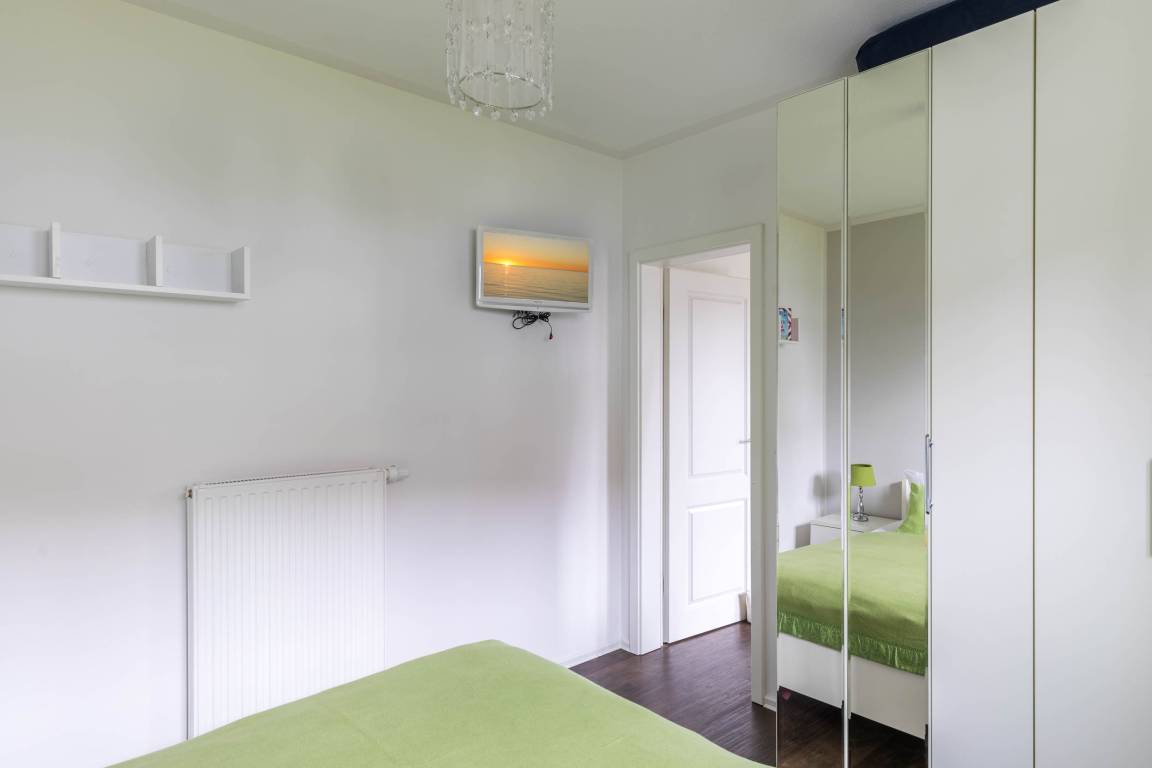 Im Schlafzimmer erwartet Sie ein bequemes Doppelbett (180x200cm) und ein Kleiderschrank.