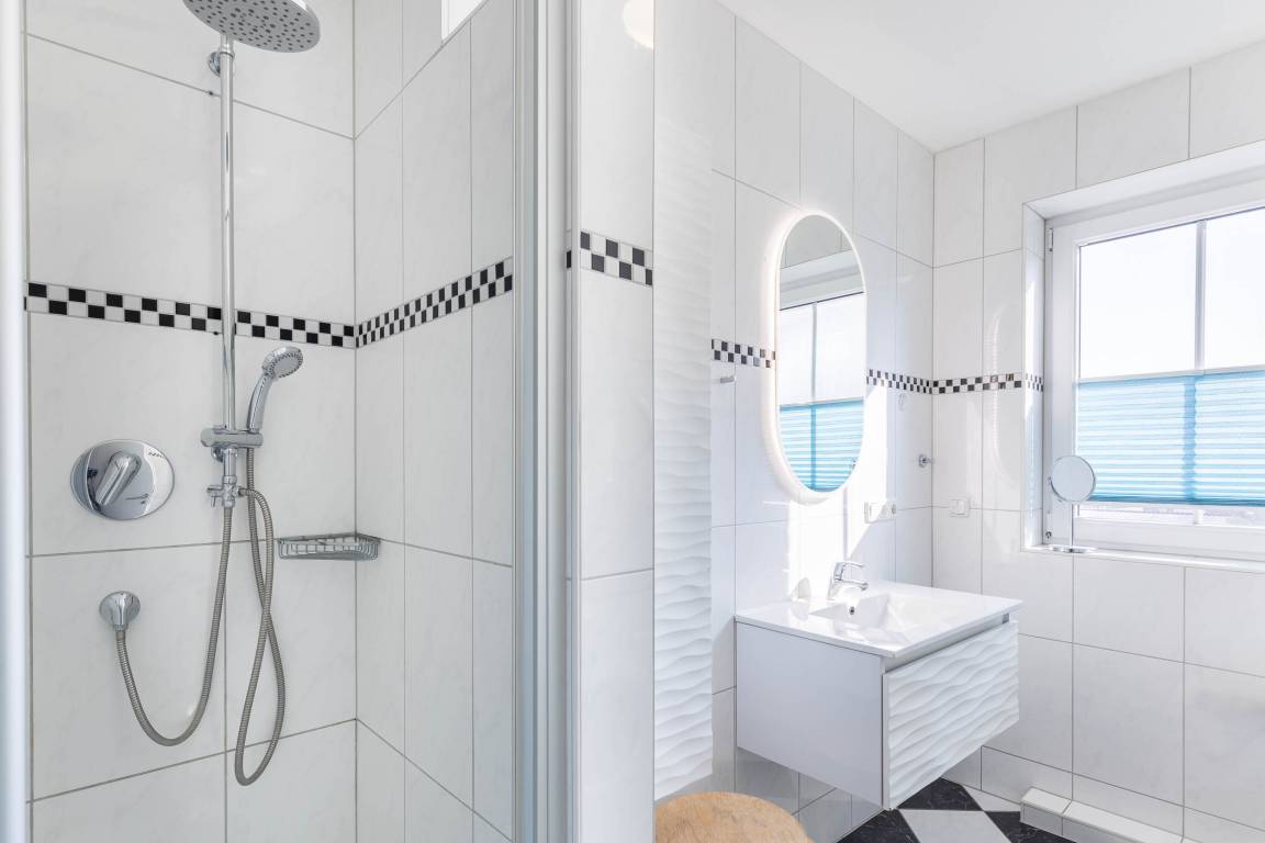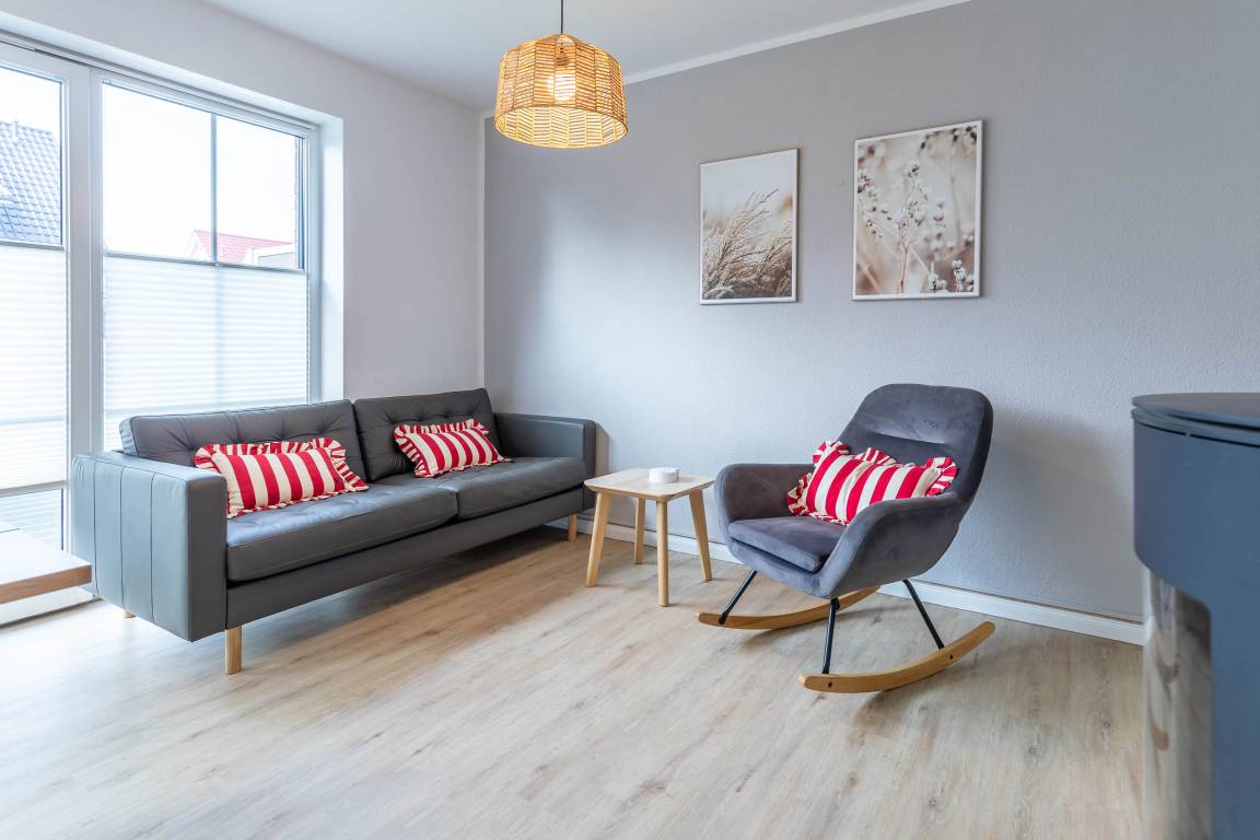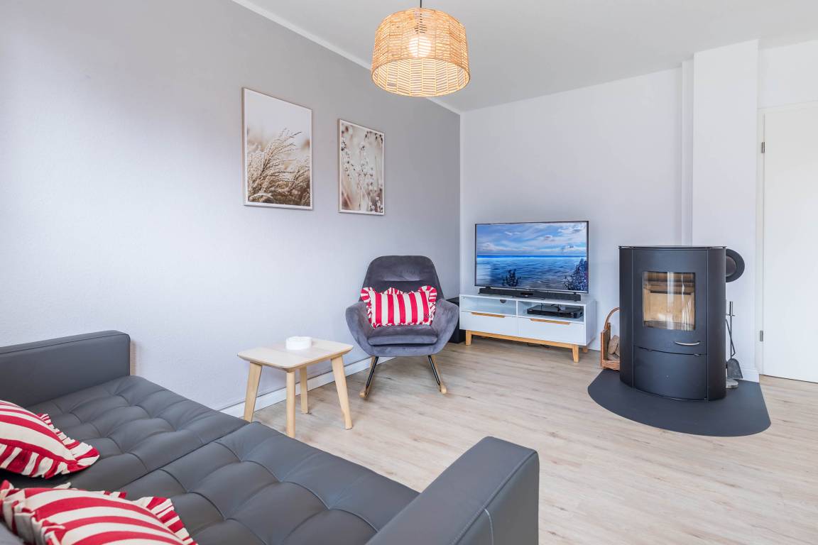 Die Haushälfte ist in separate Wohn- und Schlafbereiche aufgeteilt und verfügt über zwei Bäder für eine entspannte Urlaubsstimmung. Der Kamin und die Sauna sorgen auch in der kälteren Jahreszeit für Gemütlichkeit. Eine Soundbar und kostenloses WLAN sorgen für Unterhaltung und Komfort. Die Fußbodenheizung sorgt für angenehme Wärme.