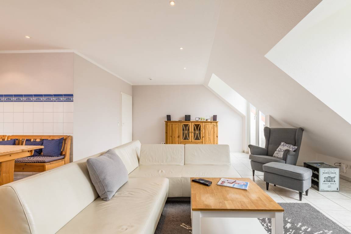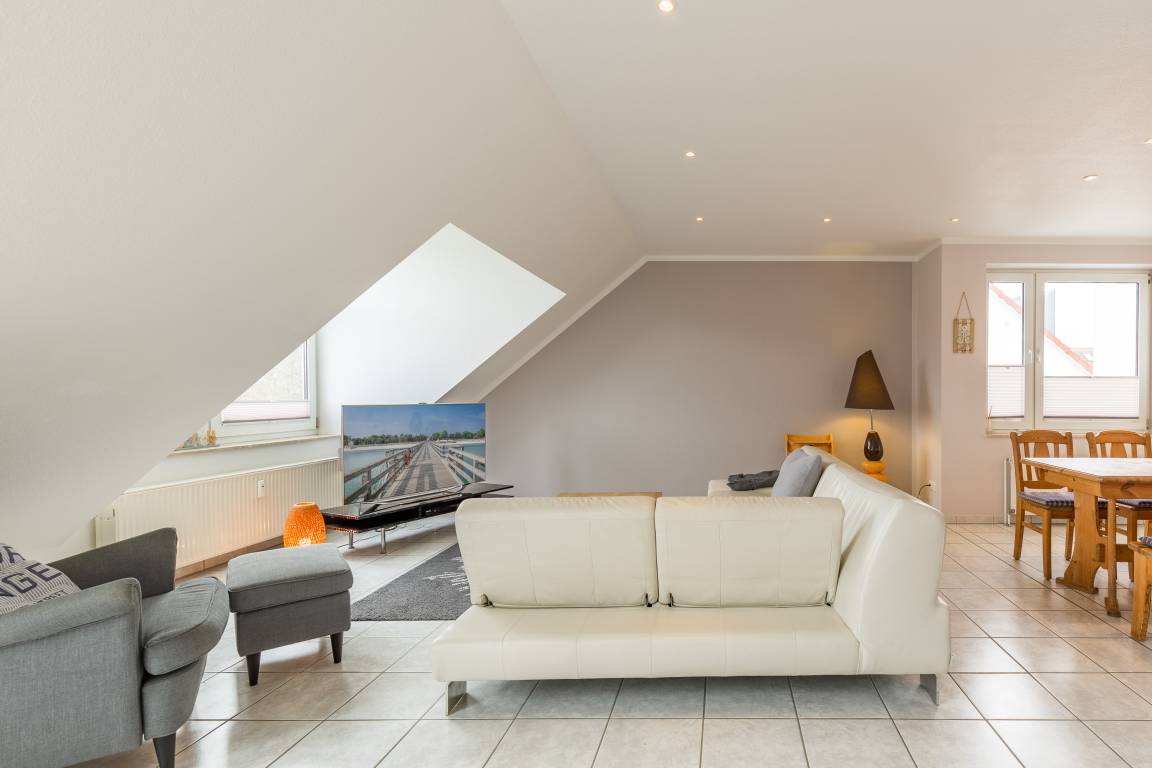 Die 3-Zimmer-Ferienwohnung "Ferienliebe Sünnslag - Sünnslag 016" befindet sich in ruhiger Lage in Boltenhagen in der Ferienanlage Sünnslag. "Sünnslag" bedeutet Sonnenlage. Die Wohnung ist eine Dachgeschoßwohnung ( 2. Etage) im Ahornweg 2 in Boltenhagen. Mit einer Größe von 78 m² bietet sie Platz für maximal 4 Personen. Das Appartement hat eine separate Küche, 2 Schlafzimmer, ein Duschbad und ein Gäste-WC.