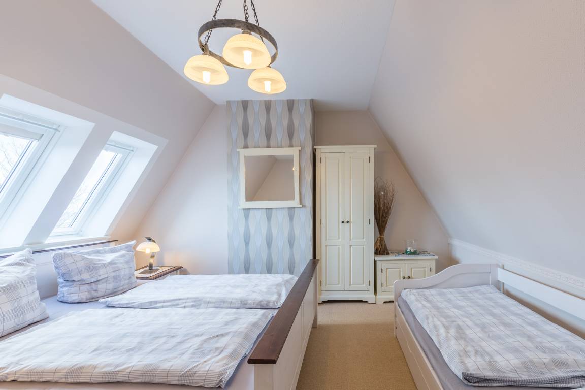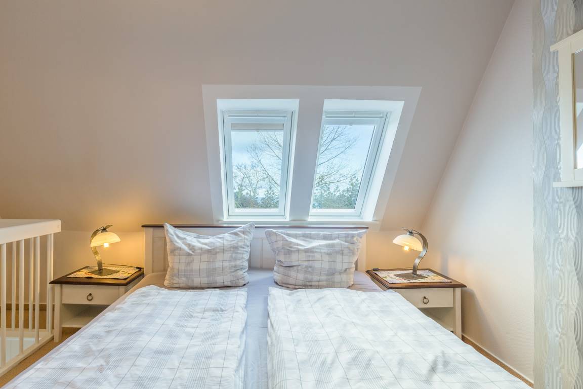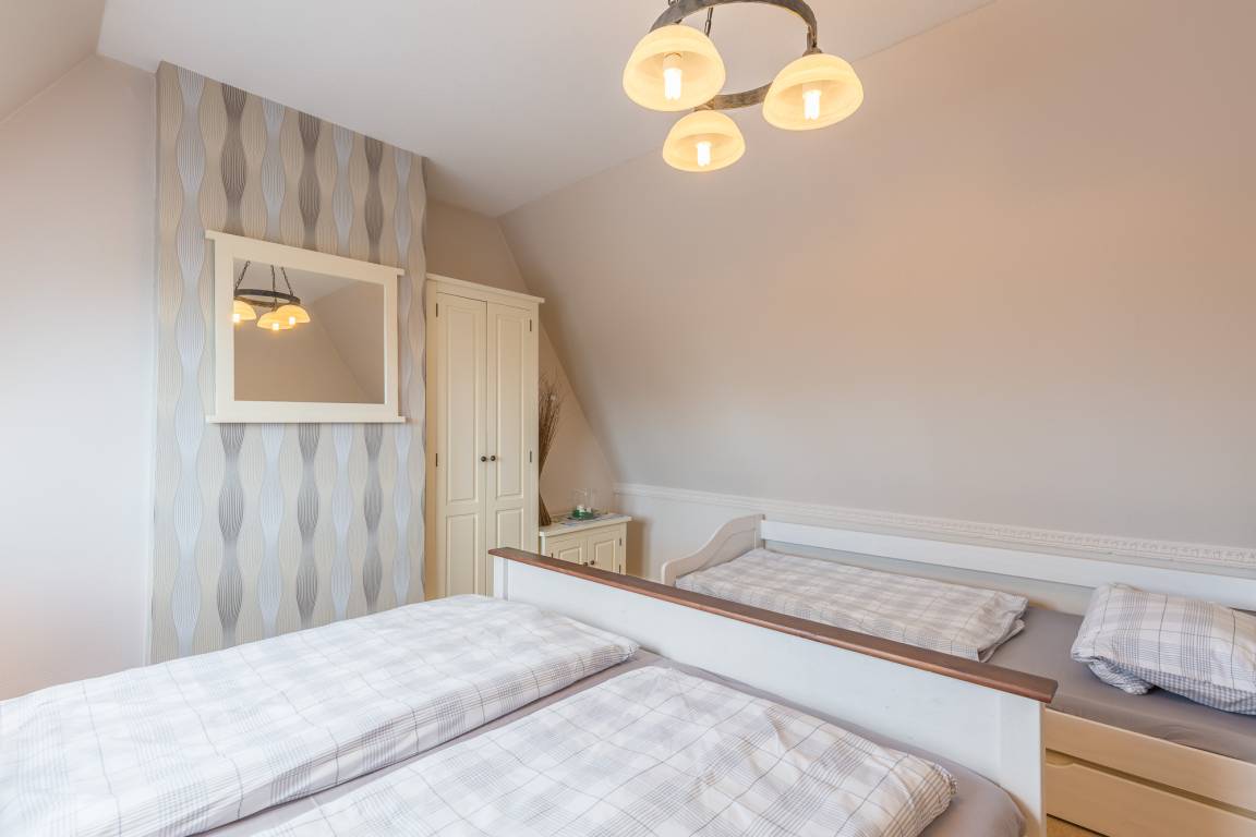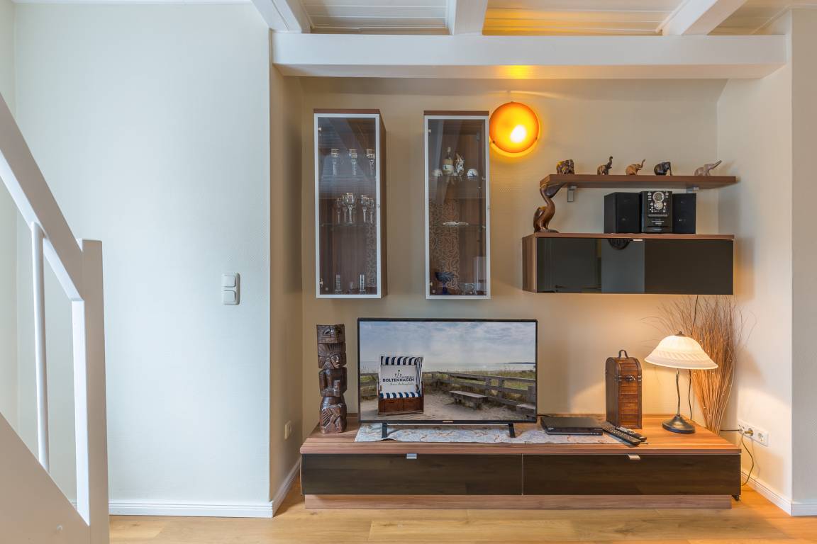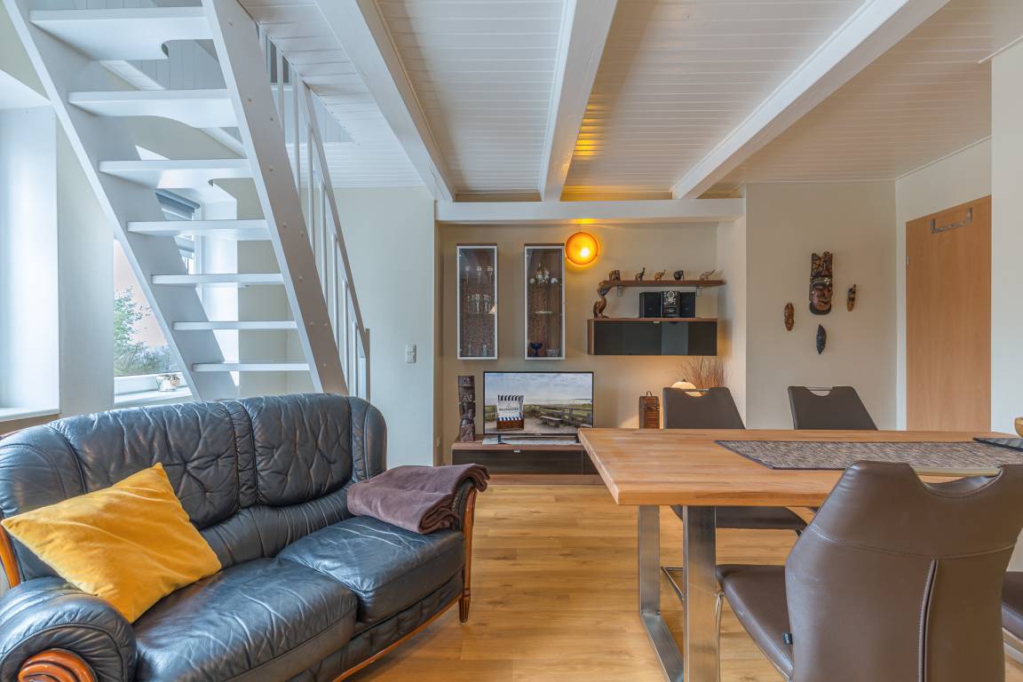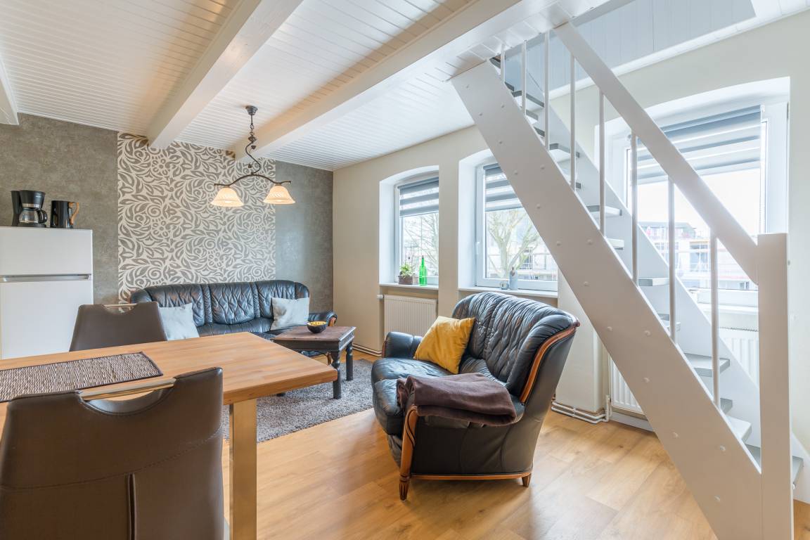 Diese Maisonette-Ferienwohnung ist ruhig gelegen und nur etwa 20 m vom Strand entfernt. Sie bietet mit einem offenen Schlafzimmer mit Doppelbett im 2. Obergeschoss und einem Wohnzimmer Platz für bis zu max.3 Personen.