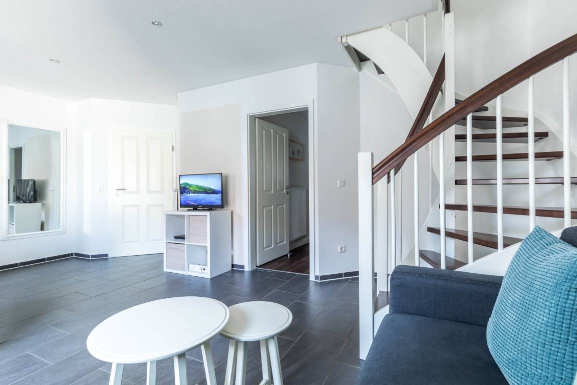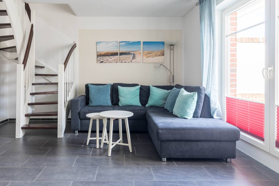 Im hellen und freundlichen Wohnbereich mit SAT-TV und DVD-Player sorgt in der ersten Wohnebene eine gemütliche Sofaecke für Entspannung.