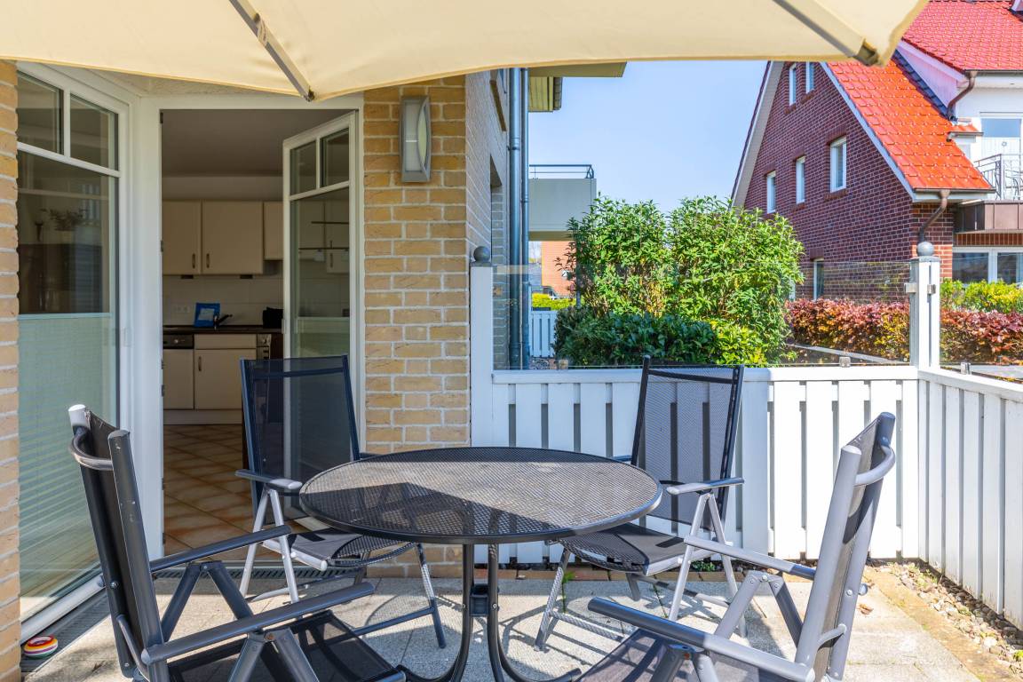Auf der möblierten Südost-/ Südwest-Eckterrasse können Sie herrlich die Ostseeluft genießen.