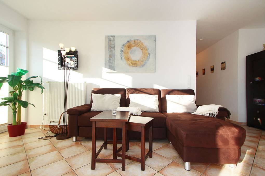 Im Wohnzimmer der farblich abgestimmten Nichtraucher-Wohnung finden Sie eine schicke Schlafcouch vor (Liegefläche 130x200cm). So können hier 1-2 Personen (z.B. 1 Erwachsener oder 2 Kinder) schlafen. Zur Unterhaltung dienen ein SAT-Fernseher, diverse Spiele und ein Internet-Radio liefert die musikalische Untermalung.