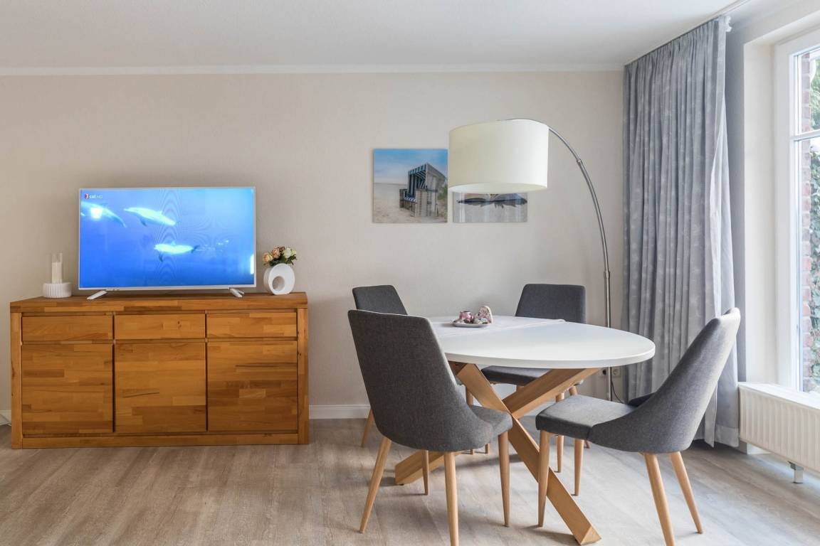 Zur Unterkunft gehört ein gemütlich moderner Wohn- und Essbereich offener Küchenzeile, welche mit einem Cerankochfeld, einem Backofen, Geschirrspüler, Kühlschrank mit Gefrierfach, Mikrowelle sowie ausreichend Geschirr und Gläser ausgestattet. Für Ihre Multimediaunterhaltung im Wohnbereich sorgen der große TV und eine Stereoanlage.