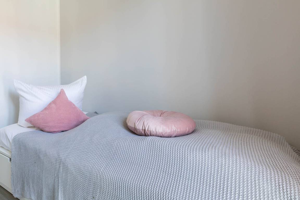 Für die nächtliche Ruhe stehen Ihnen zwei separate Schlafräume zur Verfügung: Im Schlafzimmer finden Sie ein Doppelbett (180x200cm) und eine Kommode, auf welcher sich auch ein zweites TV-Gerät befindet. Das Gäste-/ Kinderzimmer bietet zwei Einzelbetten (je 90x200cm).