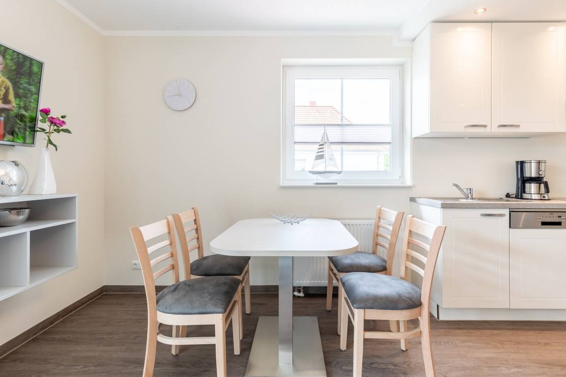 Zur gut ausgestatteten Küche gehört ein schöner, separater Essbereich für alle Gäste.