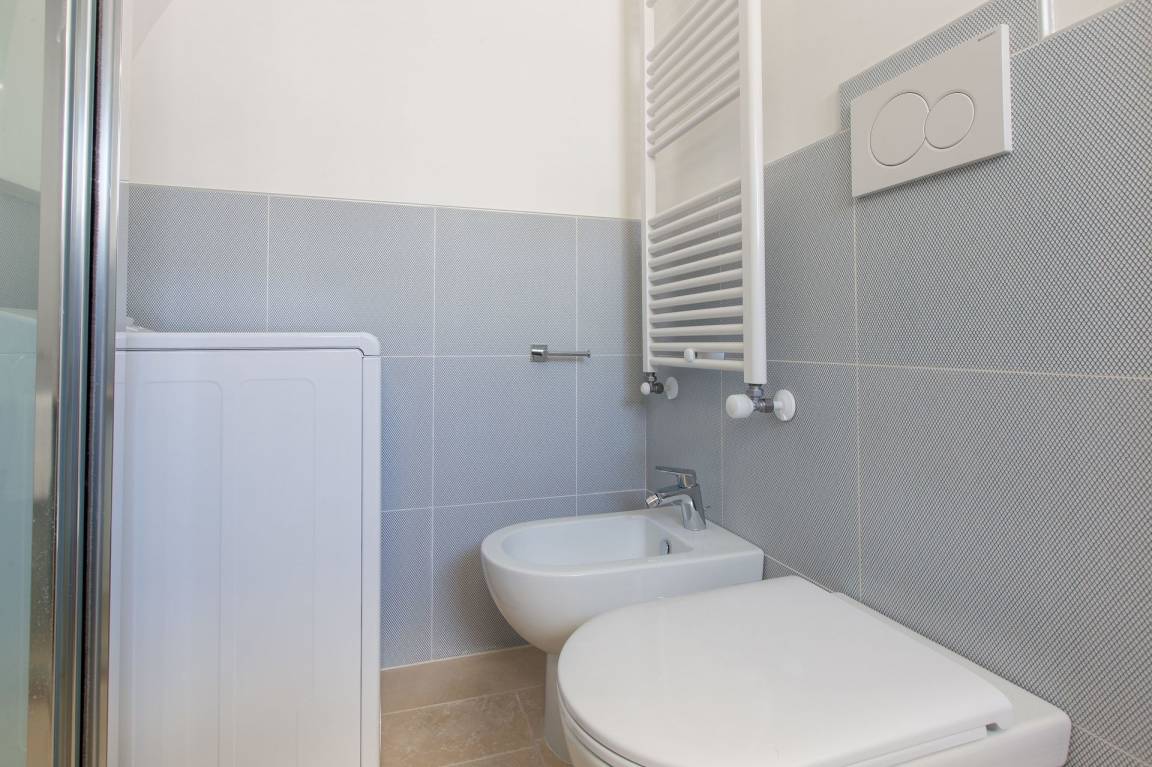 Badezimmer 1: Waschbecken, WC, Bidet, Dusche, Fön.