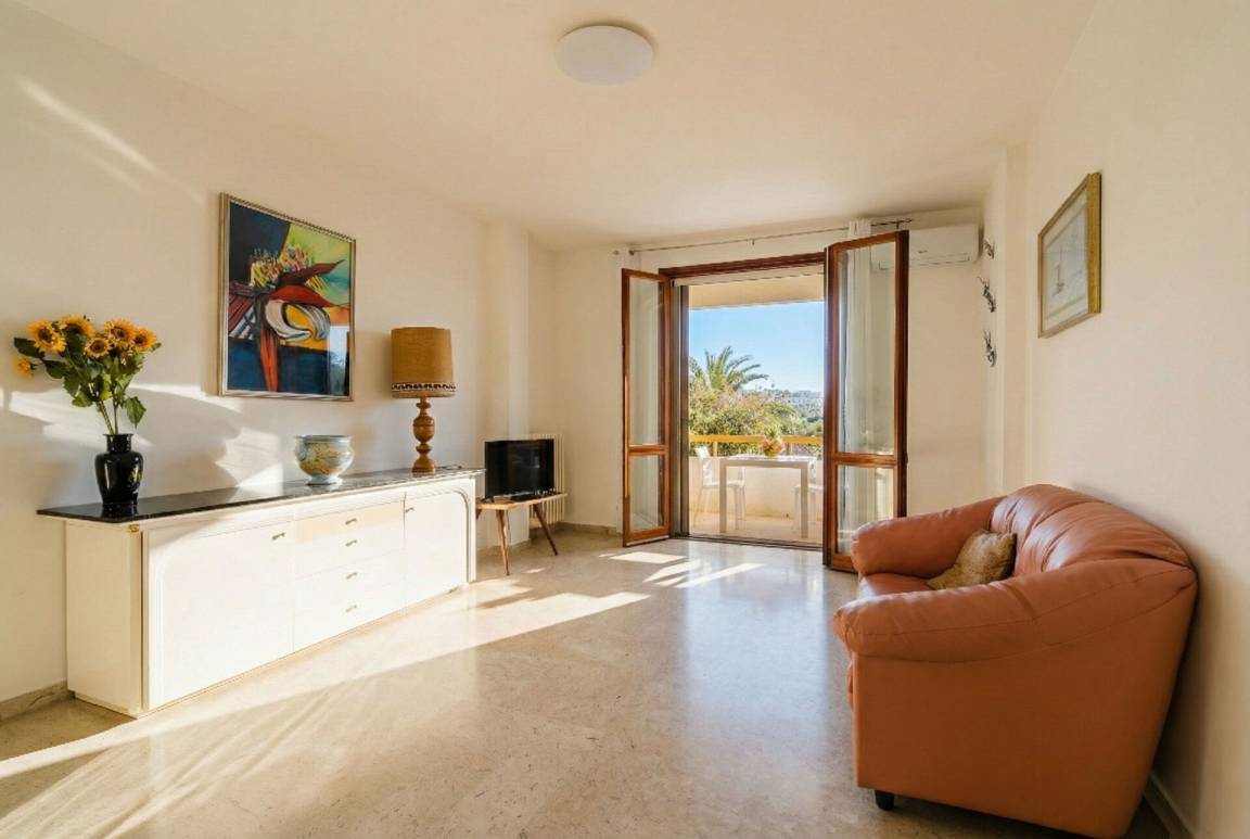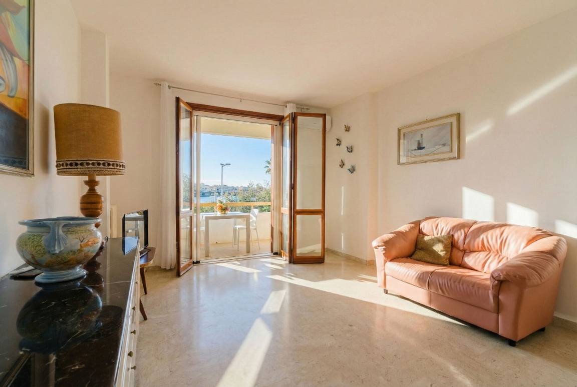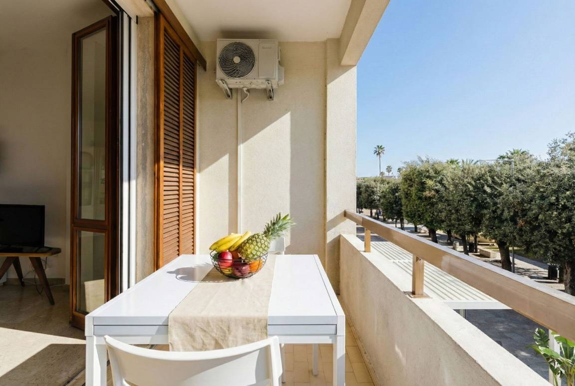 offener Raum: Esstisch (Personen: 5), Doppel-Schlafsofa, WiFi Internet, Klimaanlage, TV, Ausgang auf den Balkon.